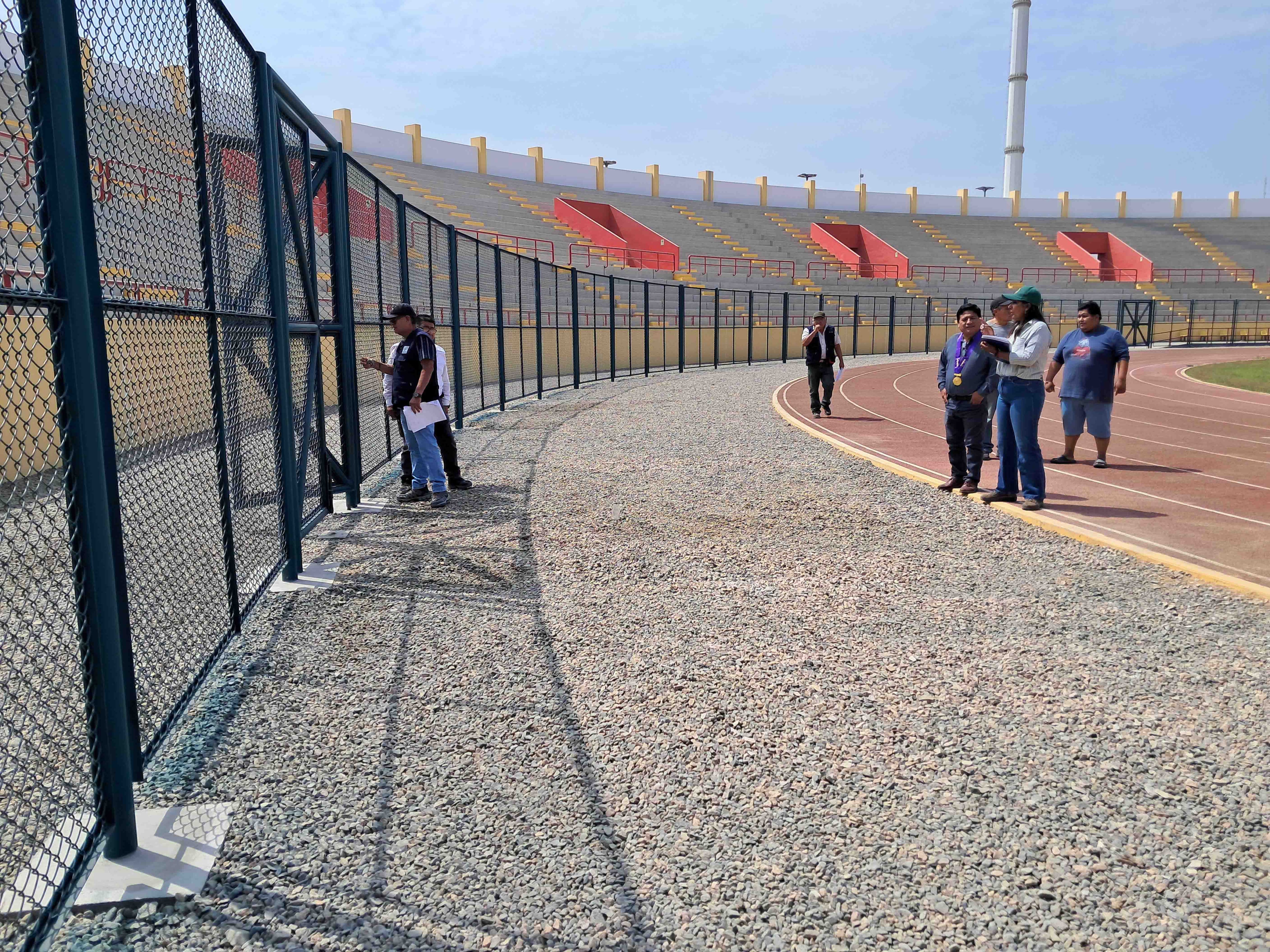 Como parte de la supervisión se realizó el recorrido por todo el perímetro del campo, ya que, en esa área se construyó el cerco para evitar que los espectadores tengan ingreso al gramado. Los miembros del Comité inspeccionaron el material utilizado, así como el acabado. “Hay una observación relacionada con el pintado (en la malla olímpica) que la empresa tendrá que subsanar para que la obra sea recepcionada”, precisó Sotelo.
