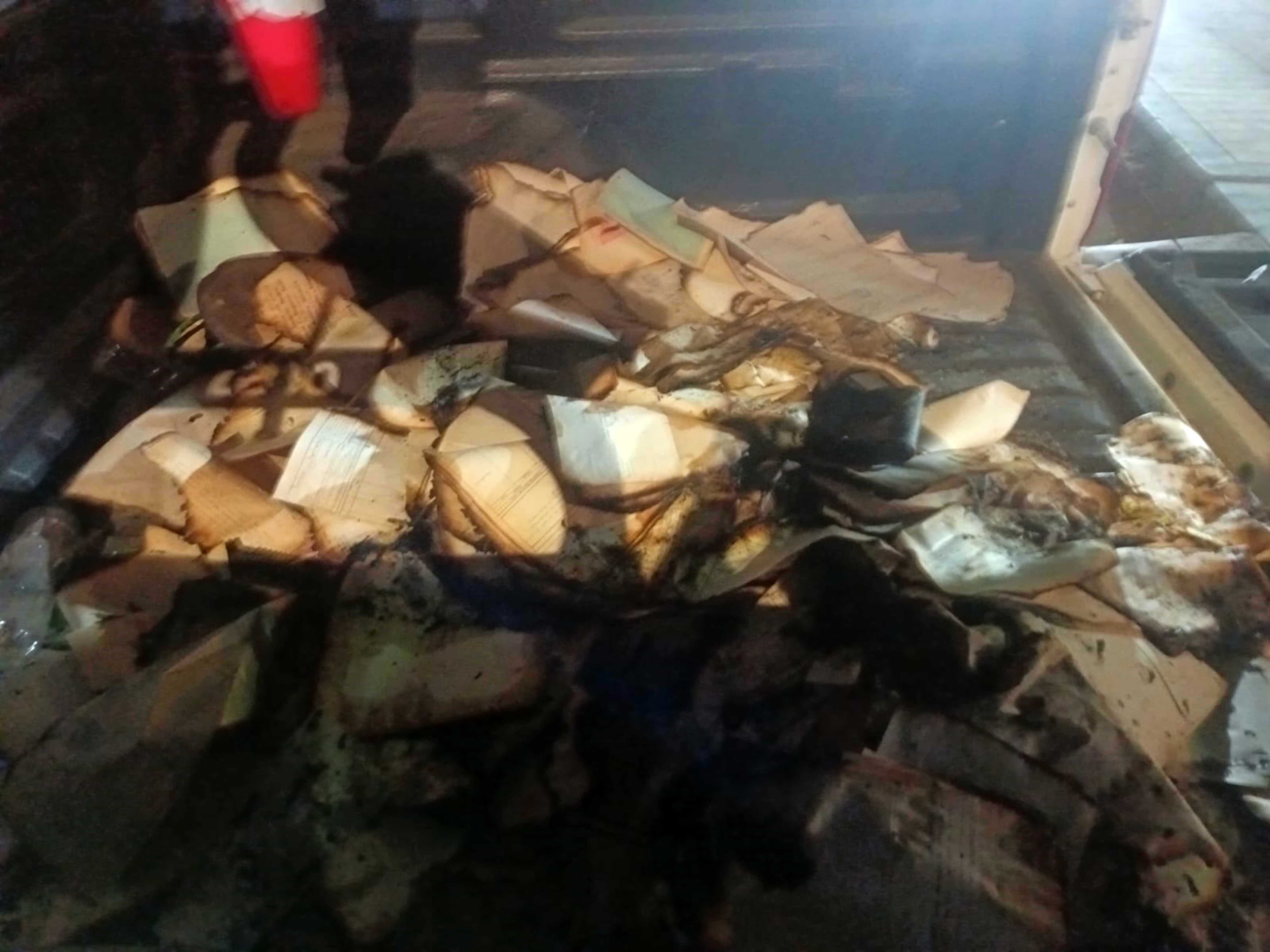 Al llegar las autoridades detectaron que, en medio de la oscuridad, había folios que estaban apilados y en pleno proceso de incineración. Aburto Saravia comenzó a arrojar tierra para sofocar las llamas, consiguiendo salvar algunos papeles, que estarían relacionados con empresas contratantes con la entidad municipal. En algunos de los documentos puede corroborarse la gestión en la que fue emitida.
