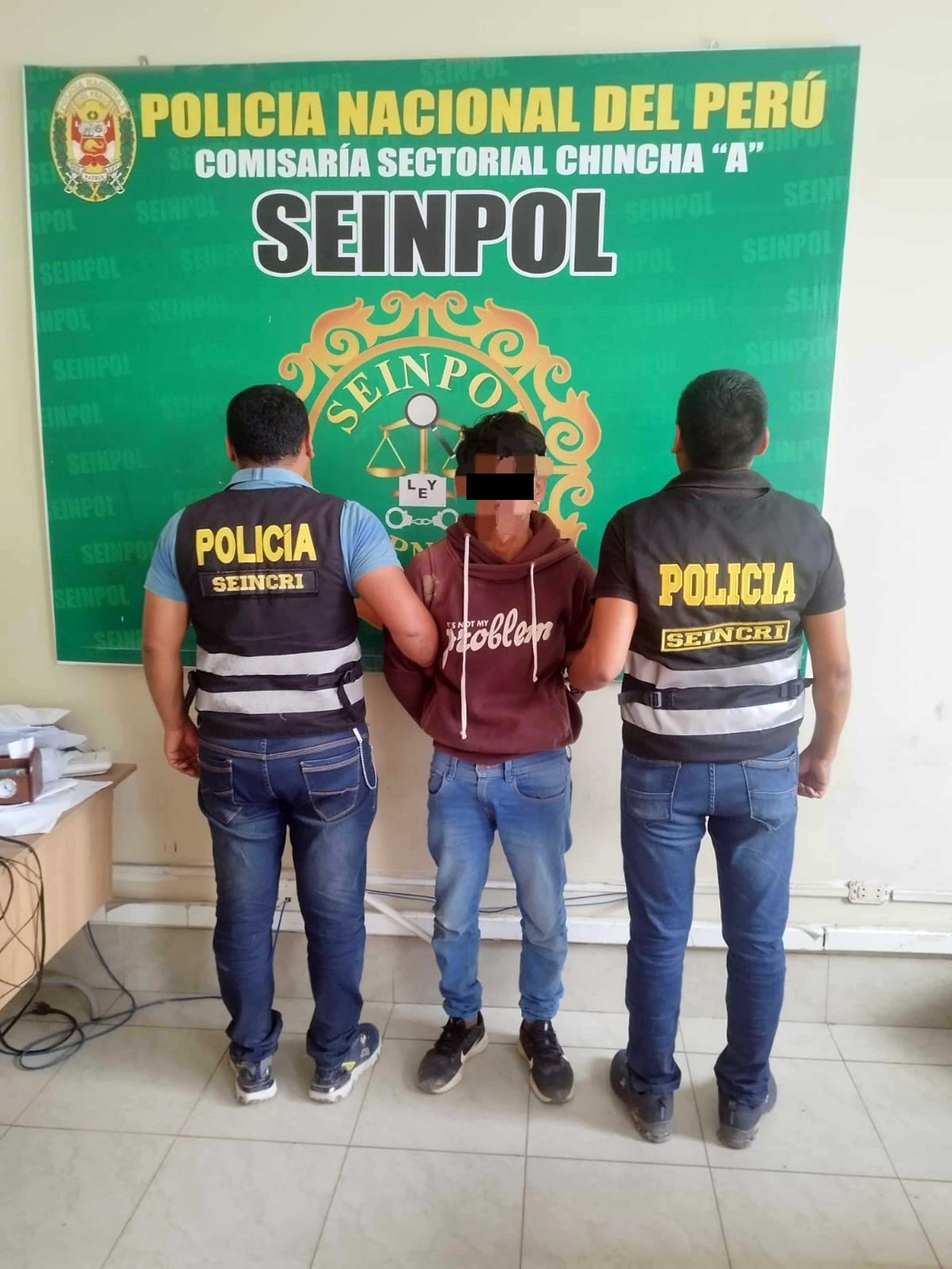 Tras este deplorable acto, ella decide acudir a la policía y presenta la denuncia por violación sexual, sindicando a su agresor. El comandante Óscar Ramos Viera, comisario de Chincha, dispuso que un equipo policial acuda en búsqueda del acusado, siendo este ubicado en circunstancias que pretendía escapar, ingresando por el pasaje Nicolas de Piérola del poblado antes indicado.
