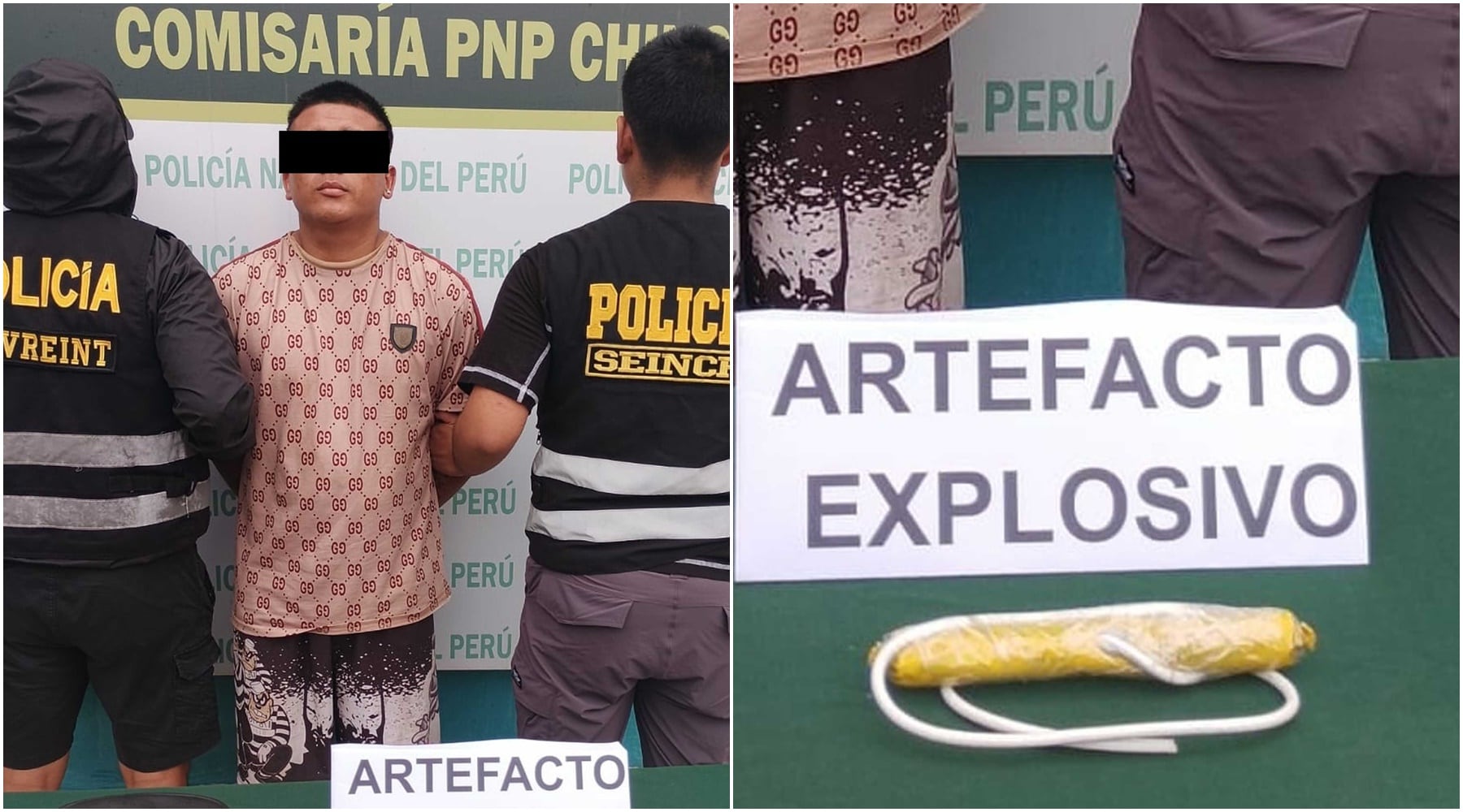 Mediante trabajo coordinado entre personal de la División Regional de Inteligencia y efectivos de la comisaría de Chincha Alta se realizó la ubicación y captura de un sujeto que merodeaba la ciudad portando un cartucho de explosivo. Se trata de J. Paytan (22), hallado por la cuarta cuadra de Benavides y trasladado a la Sección de Investigación Criminal (Seincri) para las diligencias correspondientes.