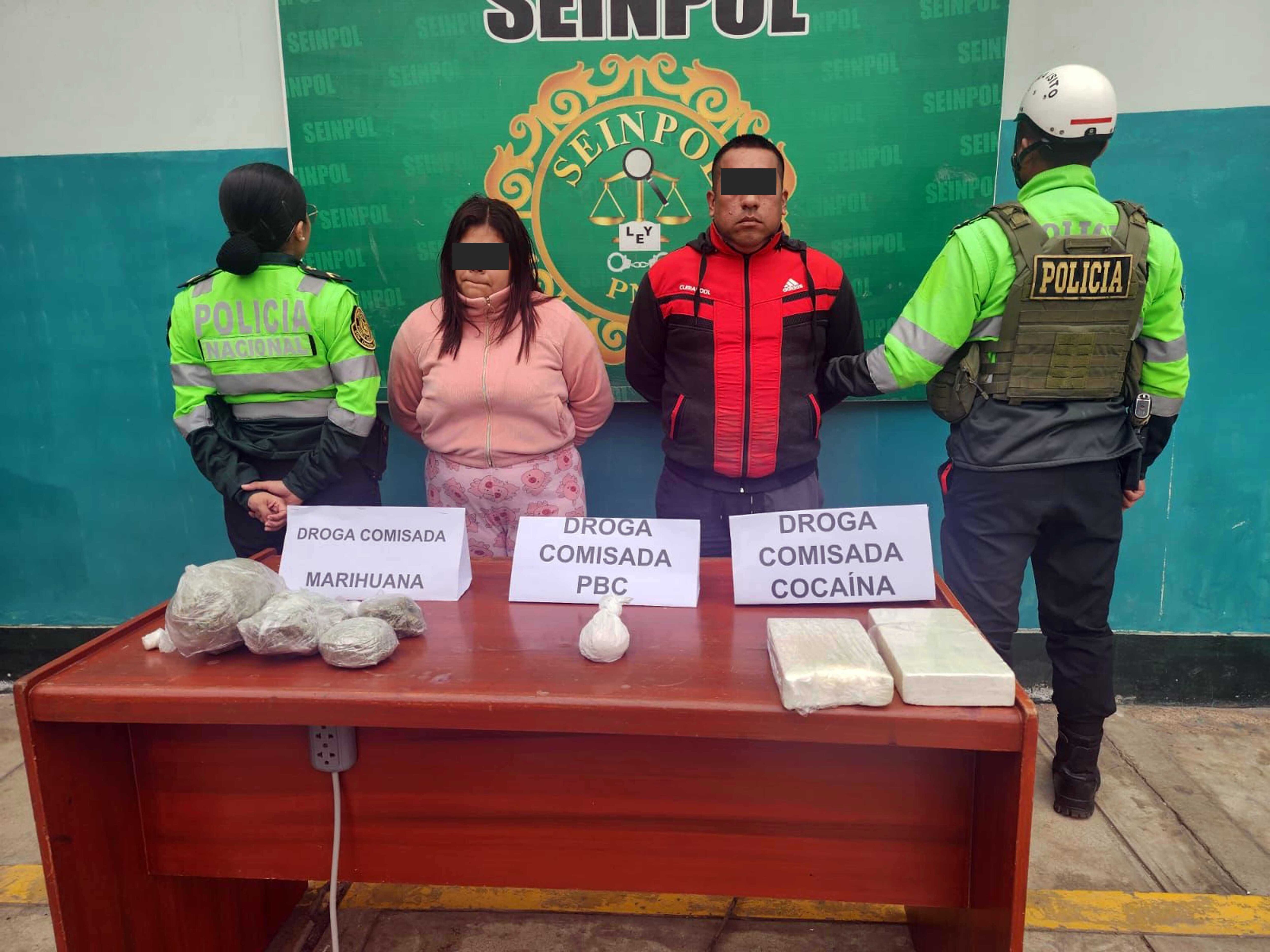La policía mantiene en condición de detenidos a la pareja de convivientes, quienes fueron atrapados por la urbanización popular de interés social El Trébol, en el distrito de Pueblo Nuevo. Según información oficial ellos estaban transportando una considerable cantidad de drogas.