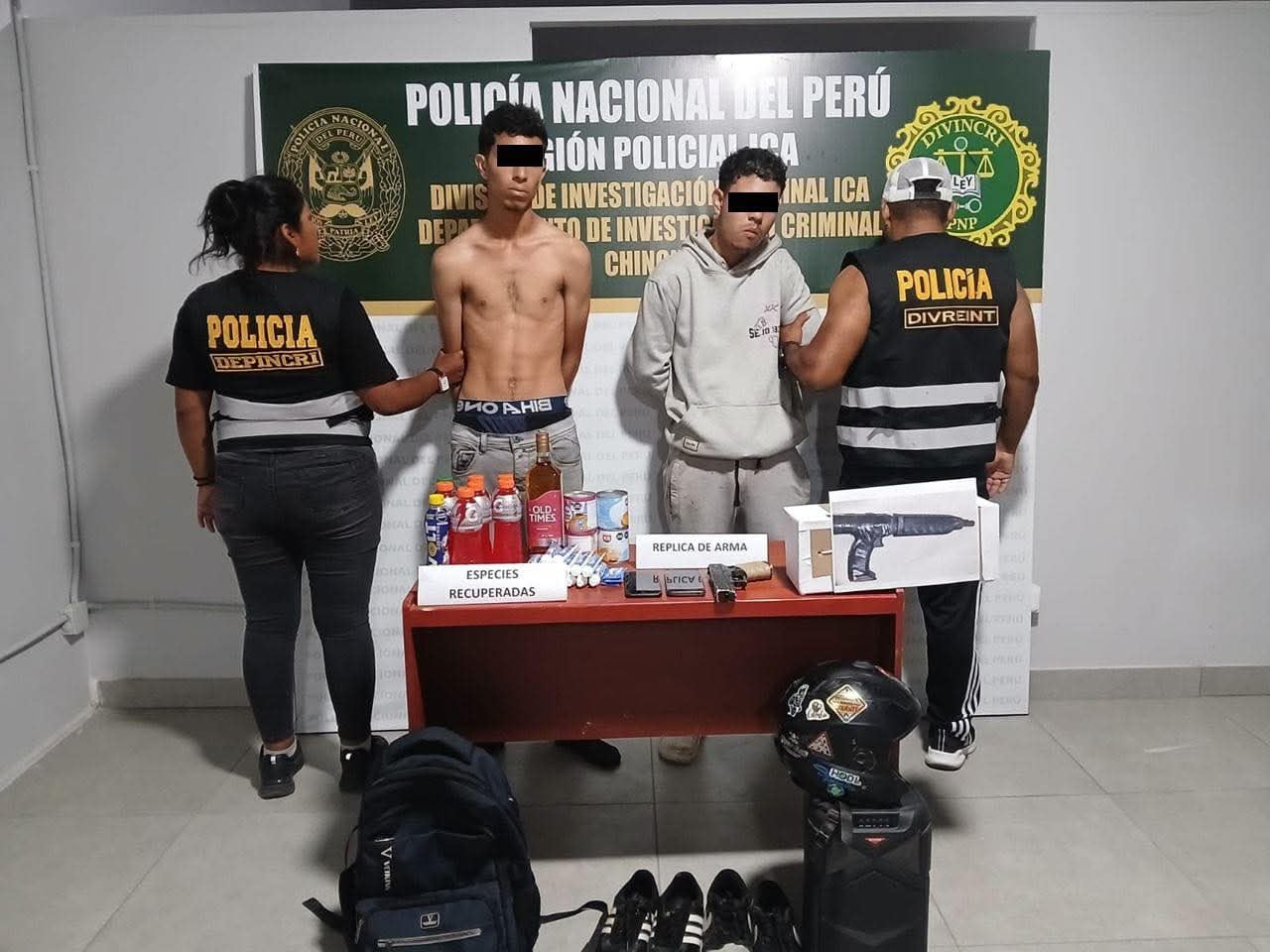 Esta vez la sorpresa era para estos sujetos, que al estar rodeados no tuvieron más opción que entregarse. La policía incautó la réplica de un arma de fuego, así como productos y un celular robado.