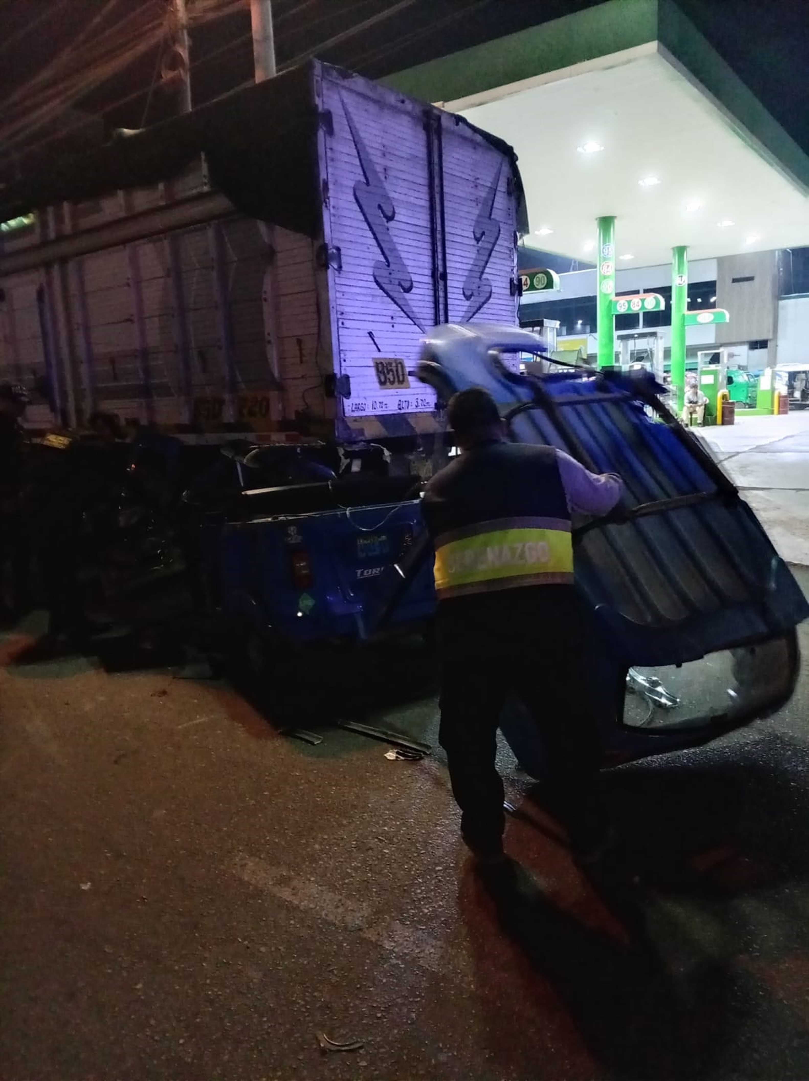 El otro accidente también fue un choque por alcance entre una trimoto y un vehículo de carga aparcado en la av. Víctor Andrés Belaunde, en Pueblo Nuevo.