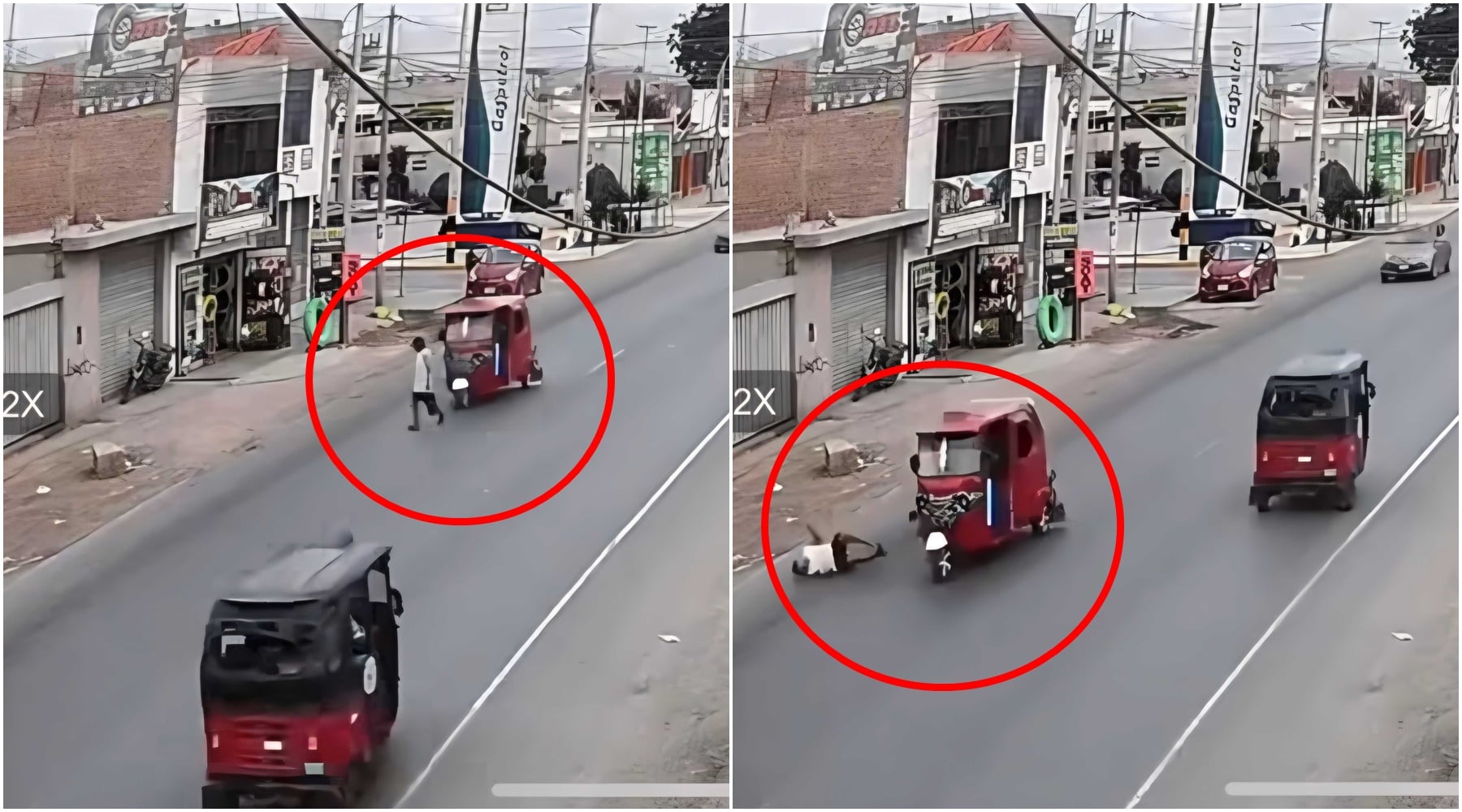 El octogenario estaba a la mitad del carril de sur a norte, a poco de salir de la vía, cuando es arrollado por un mototaxi. La grabación muestra al anciano estar de espalda al momento del hecho vial, además registra que el conductor de la unidad menor no reduce la velocidad, ni tampoco realiza maniobra para evitar el accidente. Aunado a ello sigue el recorrido sin bajar a prestar ayuda al infortunado peatón.