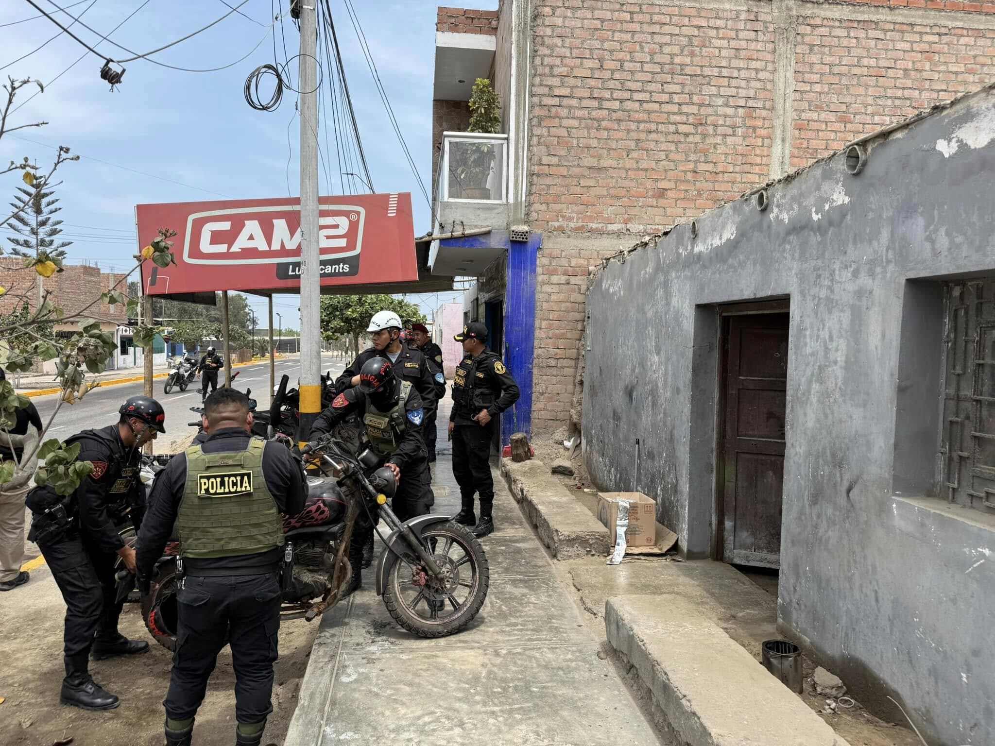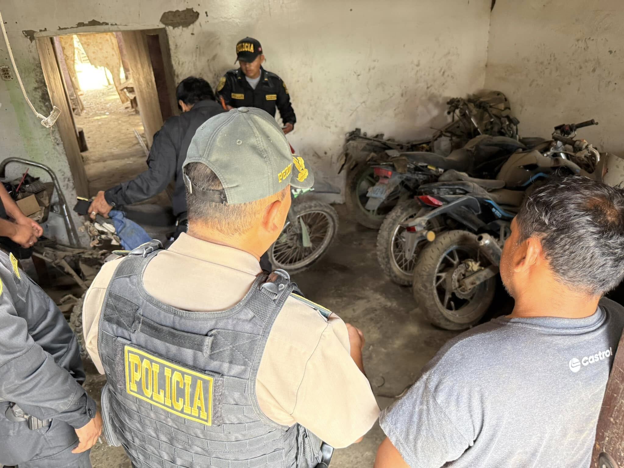 En el distrito de Alto Larán, en la provincia de Chincha, la Policía Nacional encontró un inmueble que funcionaba como centro de desmantelamiento de vehículos robados. Se encontró modernas motocicletas que fueron robadas con violencia a sus legítimos propietarios.