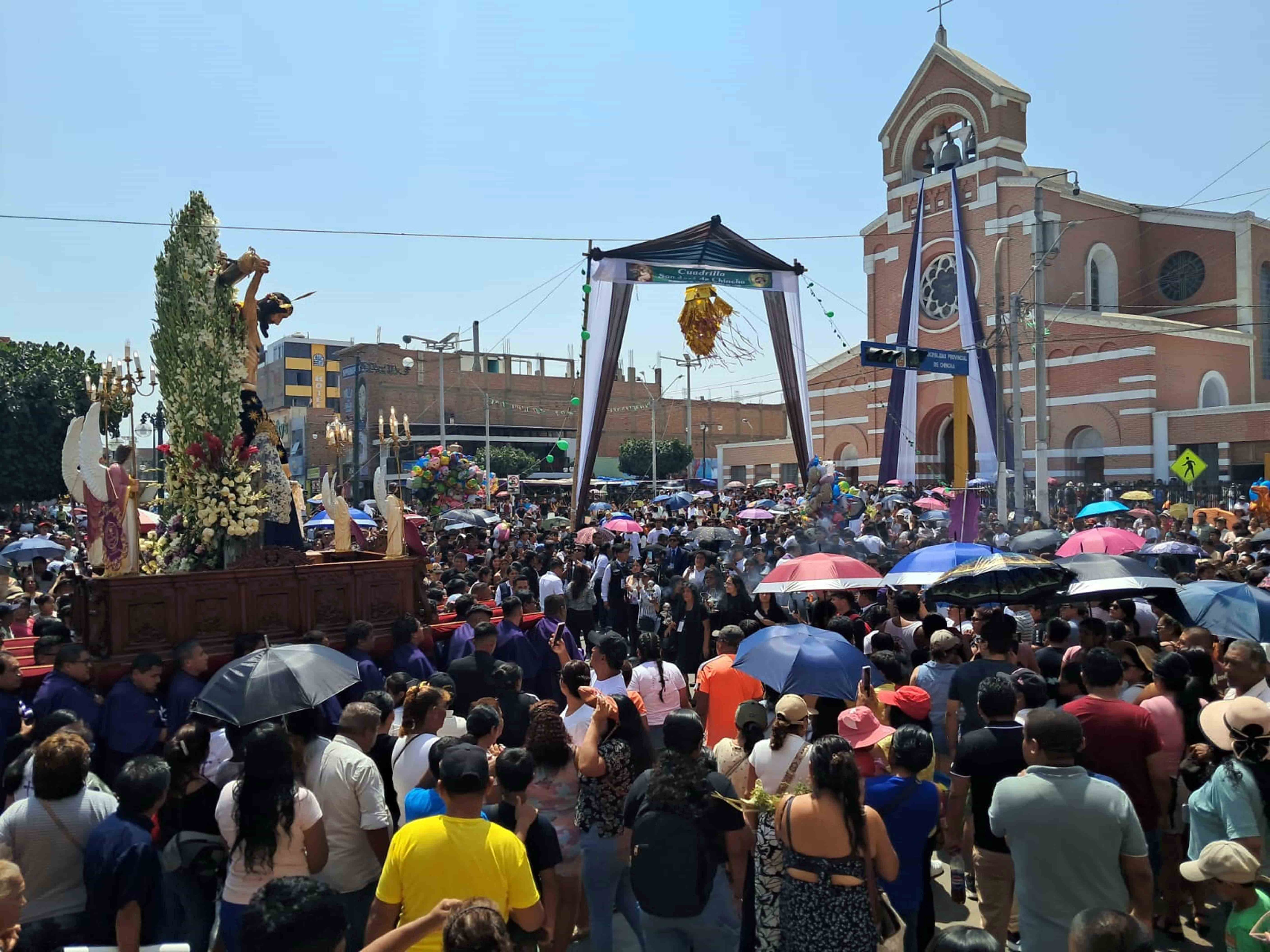 La población chinchana desde la mañana del Viernes Santo comenzó a prepararse para el recibimiento del cristo en la cruz. En cada arteria por donde iba a pasar el anda se realizaron impresionantes alfombras y arcos de flores para su bienvenida. La primera acogida fue en frontis de la parroquia, para luego dar inicio al recorrido durante toda la noche del viernes, continuando sin descanso en la madrugada del sábado.