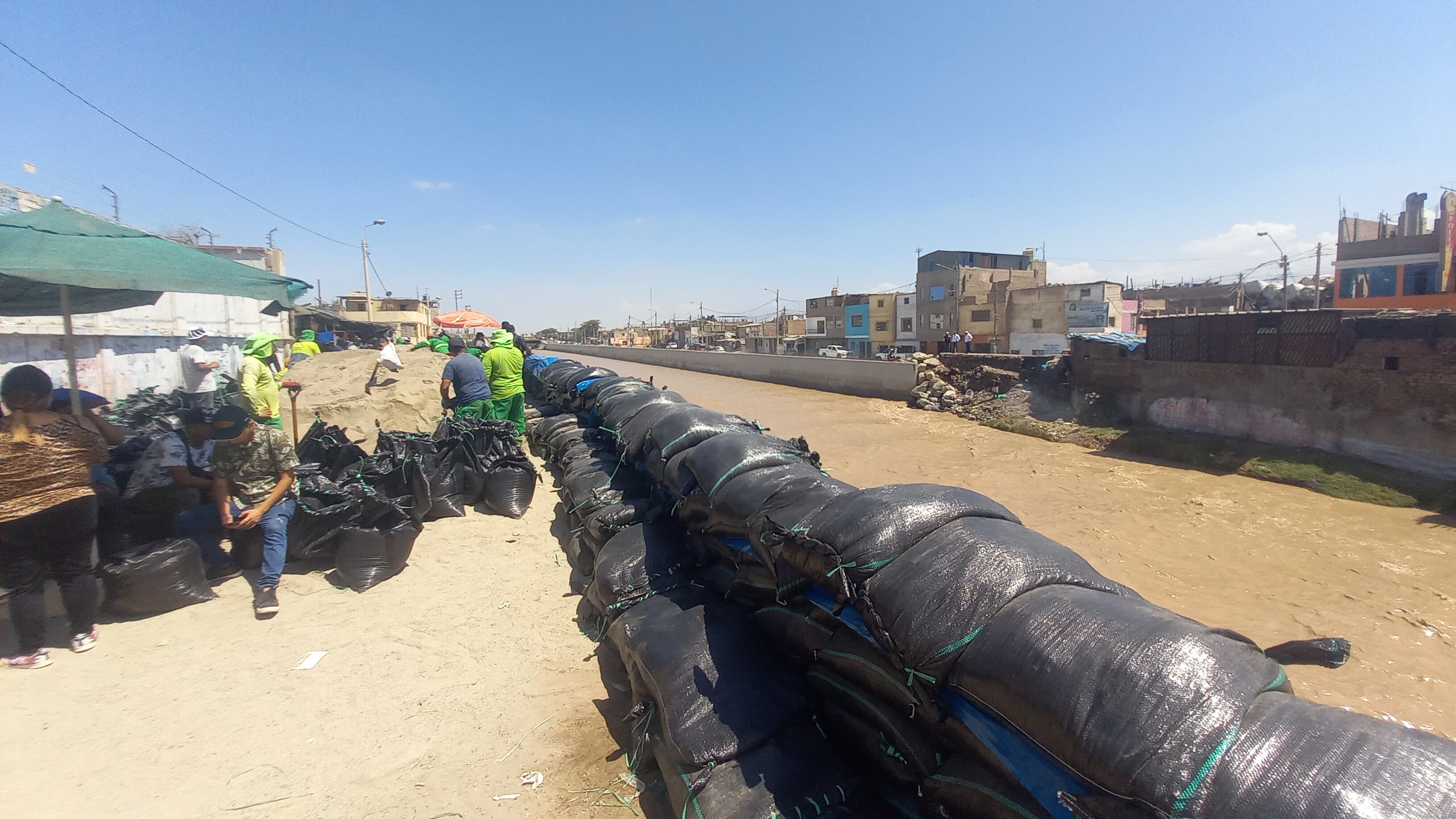 “Este es un punto crítico del tramo urbano del río Ica, donde no se ha intervenido con obra y pone en muy alto riesgo ante un peligro de desborde e inundación, es por eso que en una acción de contingencia estamos colocando sacos de arenas forrados con plástico para que en caso el caudal aumente pueda discurrir el agua sin ningún problema. Planificamos colocar 500 sacos, pero ya vamos 700 sacos y se proyecta la colocación de mil sacos de arena, cada uno pesa 70 kilos”, declaró Rubén Pariona, subgerente de Gestión del Riesgo de Desastres y Defensa Civil de la Municipalidad Provincial de Ica.