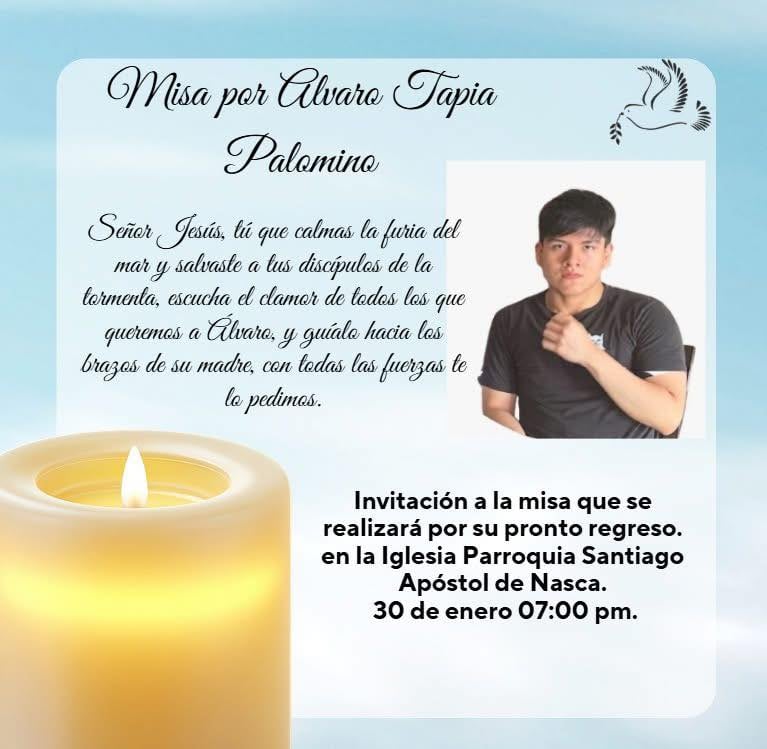 Mientras continúan los recorridos diarios, la población de Nasca, Lomas y distritos vecinos se mantiene atenta al desarrollo de las labores y se ha sumado a las cadenas de oración y muestras de solidaridad con la familia, que no pierde la esperanza de encontrar a Álvaro.
