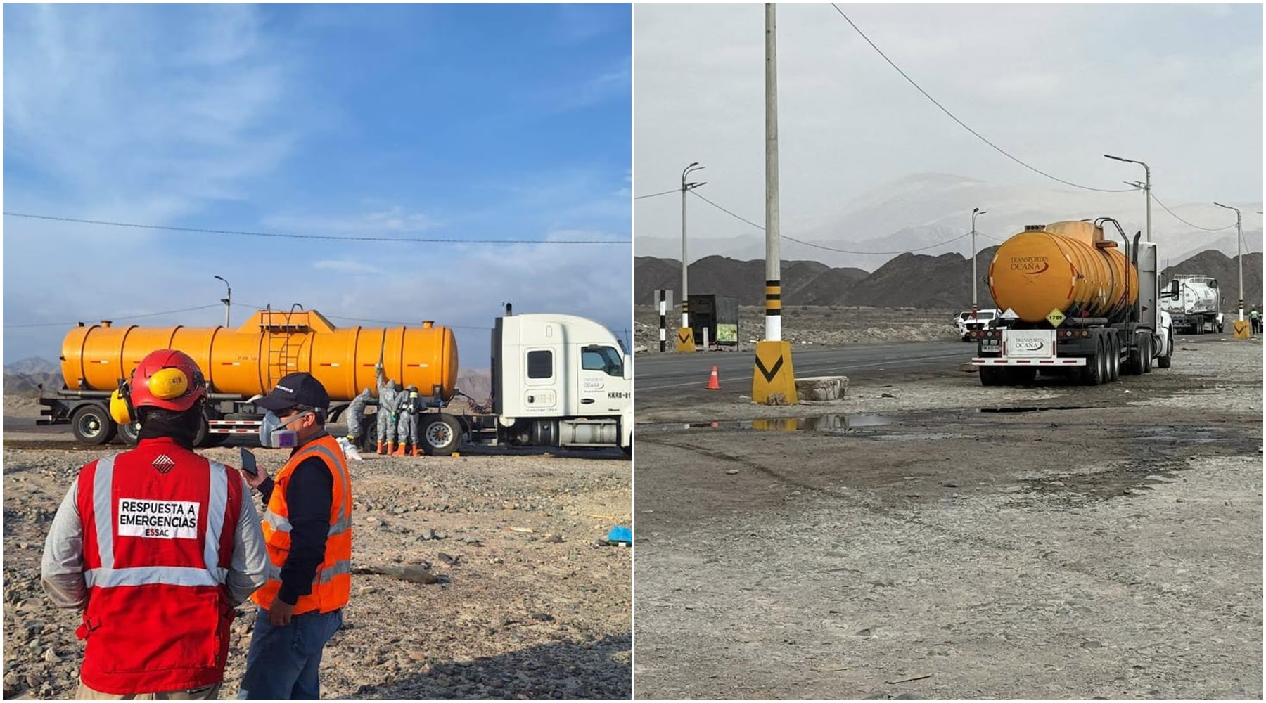 La cisterna, que según los primeros reportes sería de origen chileno, permaneció estacionada a un costado de la carretera Panamericana Sur mientras se realizaban las labores de emergencia.