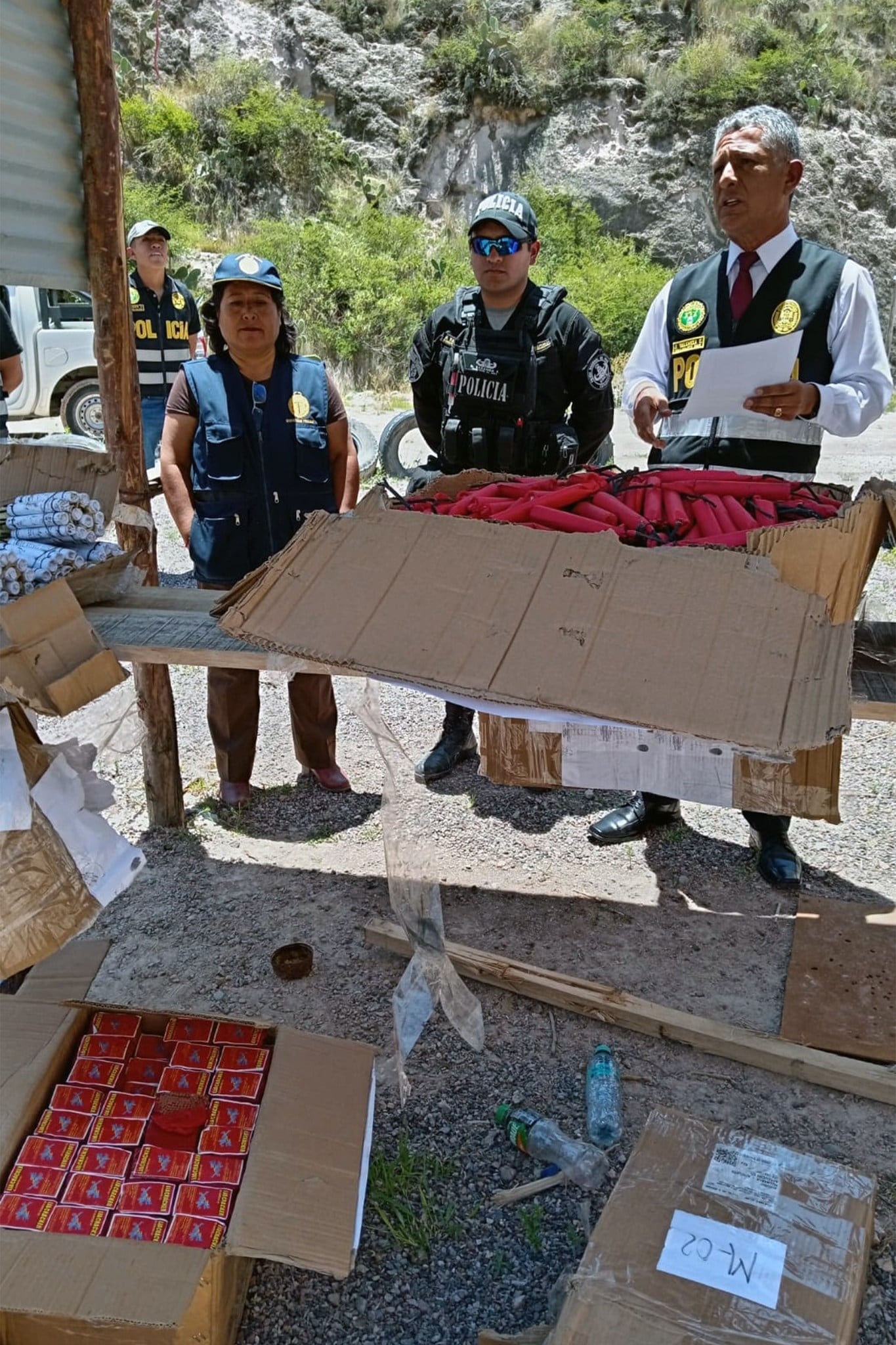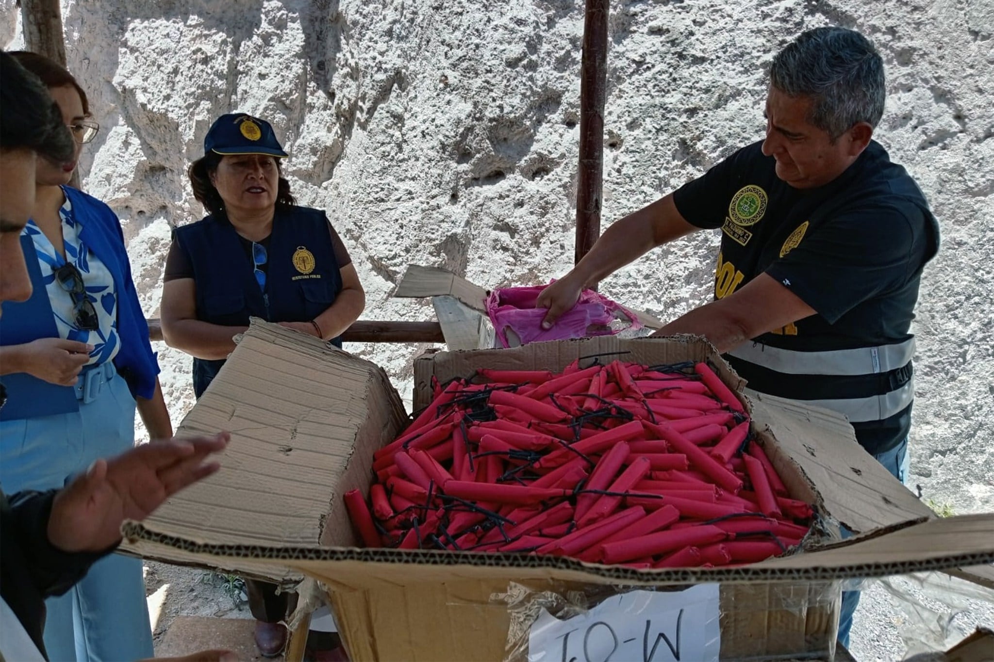 Asimismo, el 12 de diciembre del presente año, personal policial, en coordinación con la representante del Ministerio Público, intervino a un ciudadano en el distrito de Jesús Nazareno, quien tenía en su poder una caja con 500 pirotécnicos de alto poder destructivo, conocidos como Mamá Rata, además de un costal que contenía 144 avellanas y 2 mil cohetones caseros.