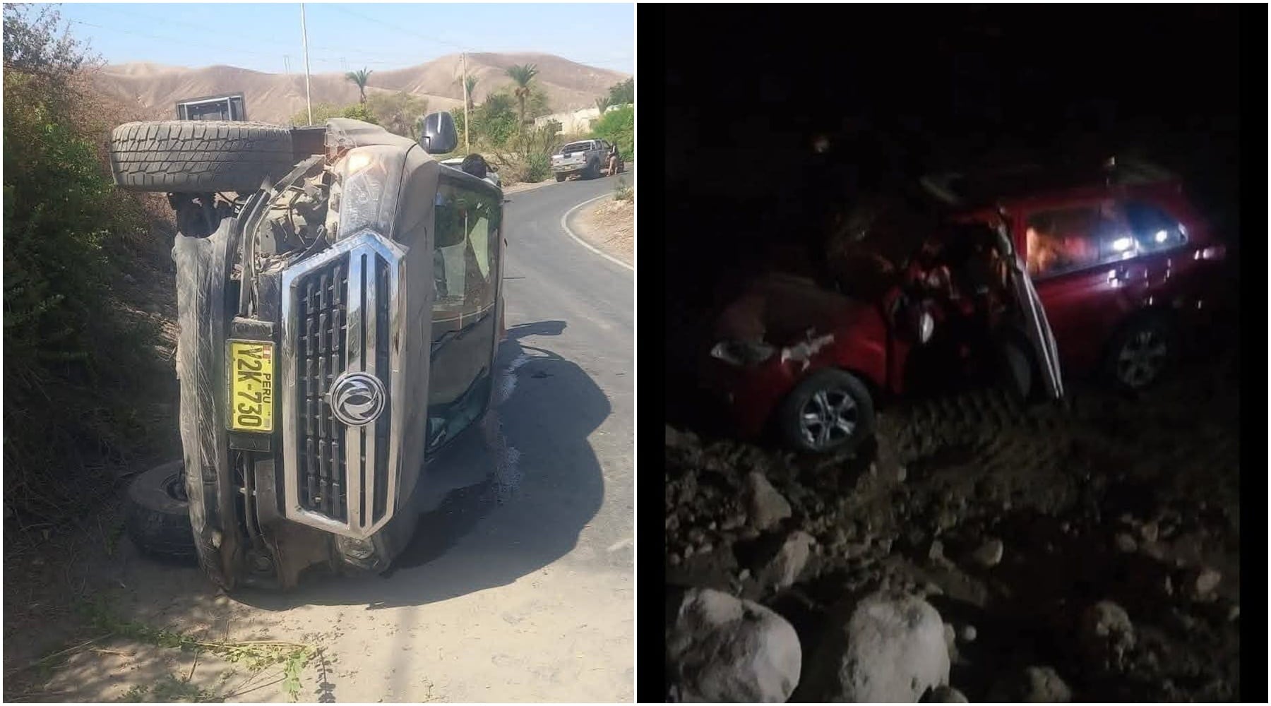 En tanto, otro accidente de tránsito se registró en la provincia de Palpa, específicamente en la zona de Portachuelo, donde una camioneta de color rojo sufrió un despiste seguido de volcadura, generando alarma entre quienes transitaban por el sector.