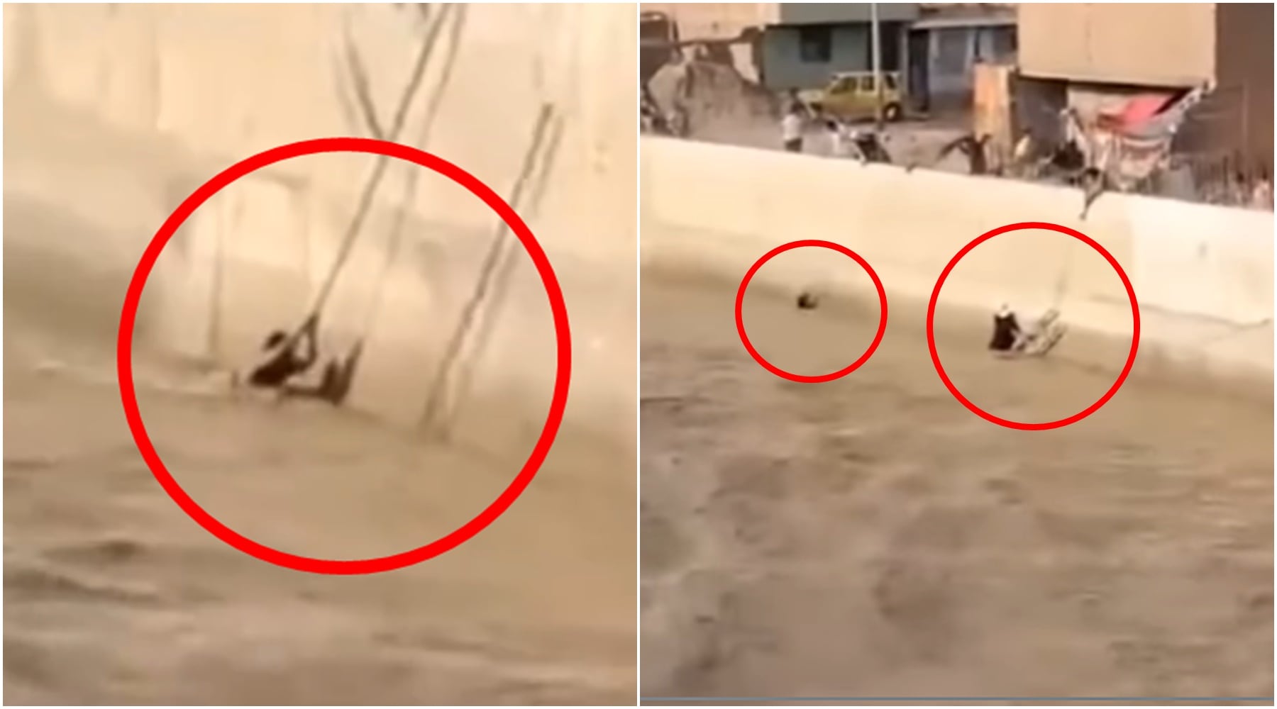 De acuerdo con testimonios de vecinos, ambos permanecieron en riesgo de ahogarse mientras eran llevados por la corriente. La situación generó alarma entre los ciudadanos, quienes intentaron auxiliarlos utilizando palos largos desde la orilla. En imágenes difundidas por testigos se observa cómo la joven logró sujetarse momentáneamente, aunque la fuerza del agua continuó arrastrándola.