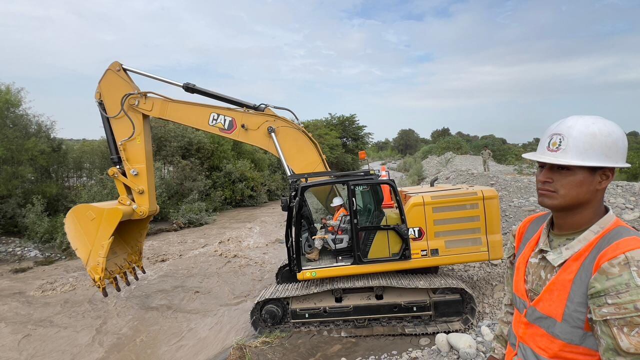 En el lugar se encuentra maquinaria del Ejército Peruano realizando los trabajos de contención ante la emergencia en los sectores de Dos Palmas, Manrique y El Cóndor afectados también por el desborde del río Pisco.
