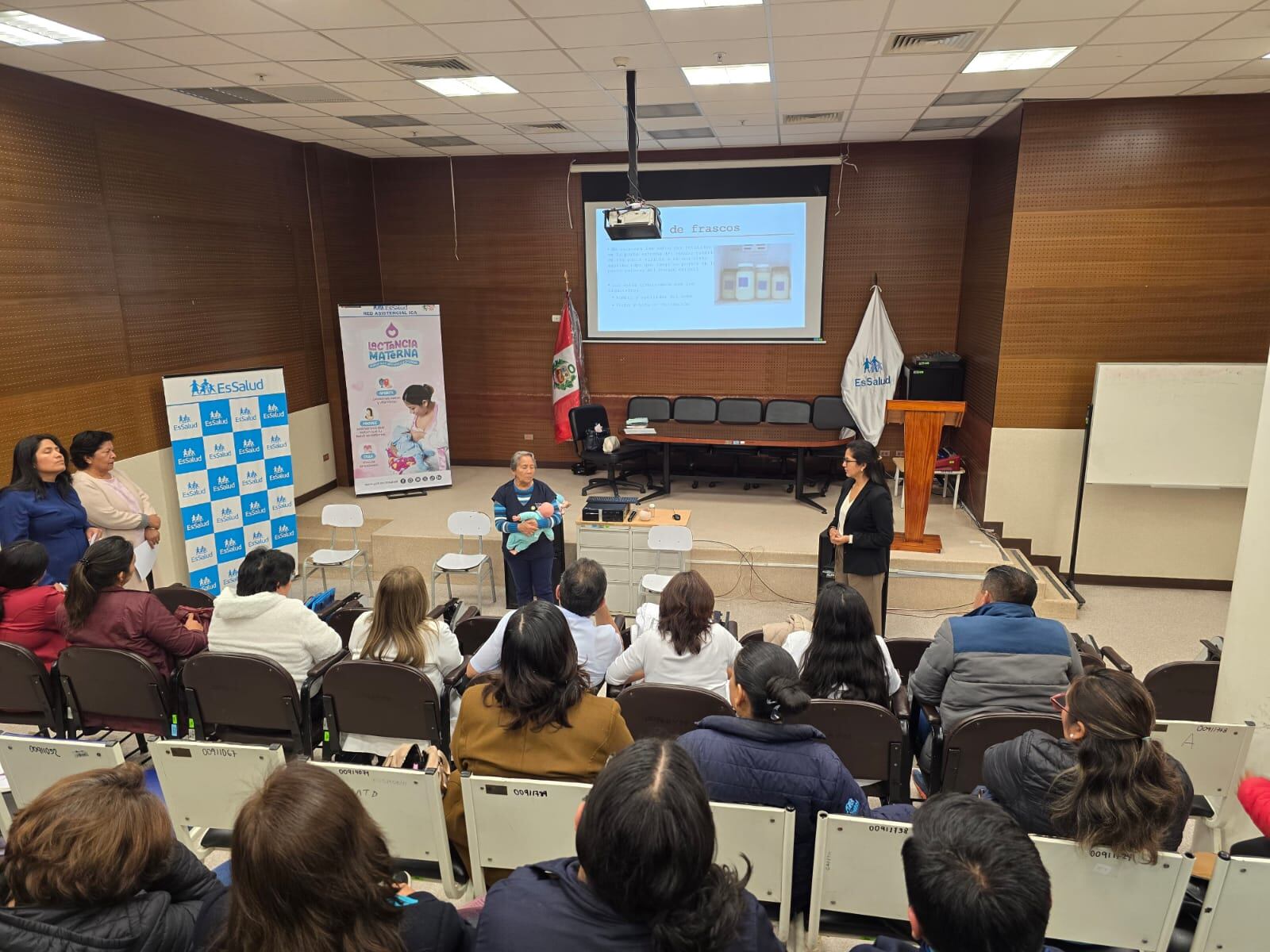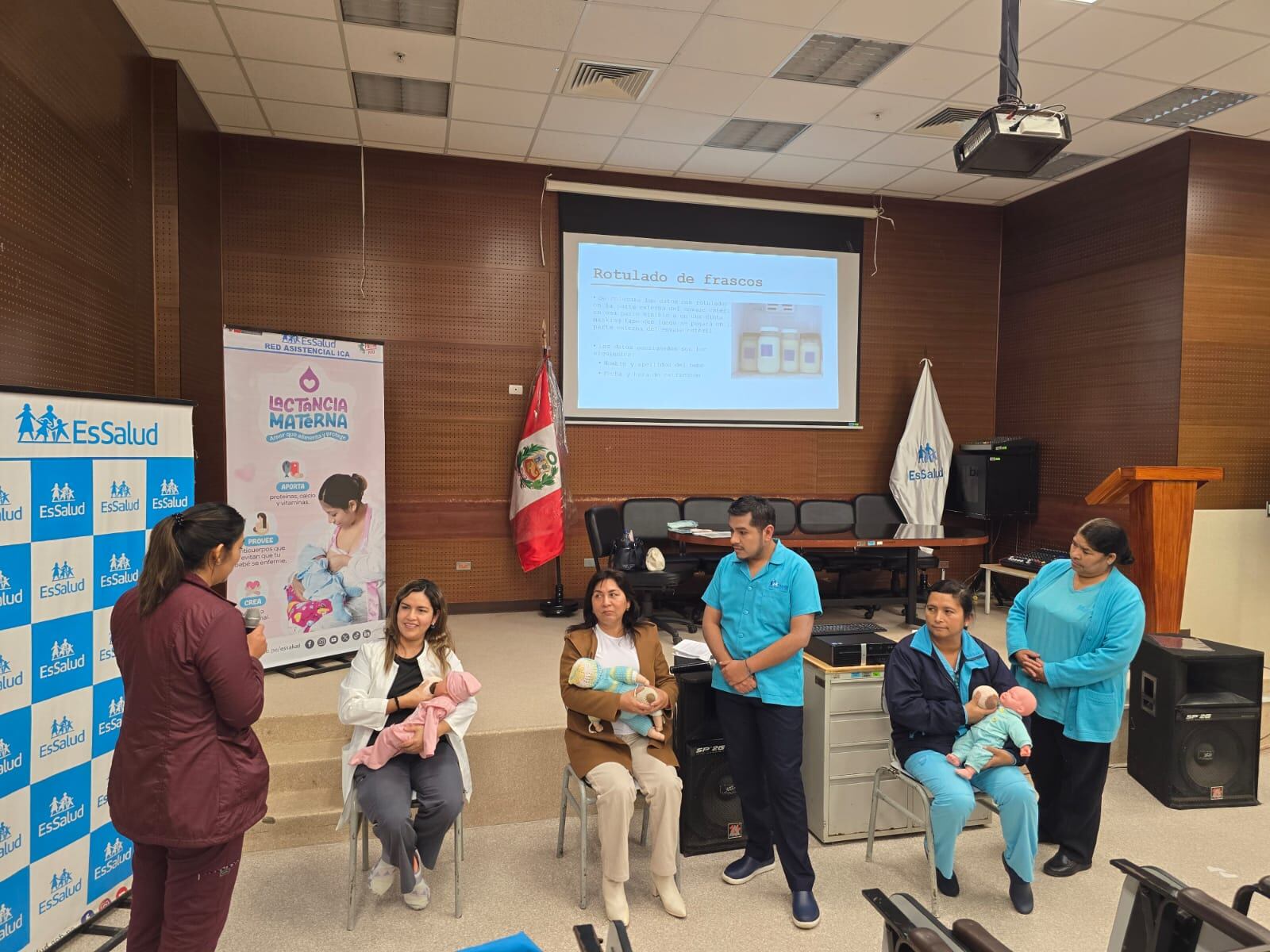 La capacitación estuvo a cargo de la Dra. Rosa Gómez Peltroche, médico pediatra, consultor internacional en lactancia materna y otros especialistas. El evento estuvo organizado por Unidad de Capacitación y Docencia en coordinación con el comité de Lactancia Materna de EsSalud.