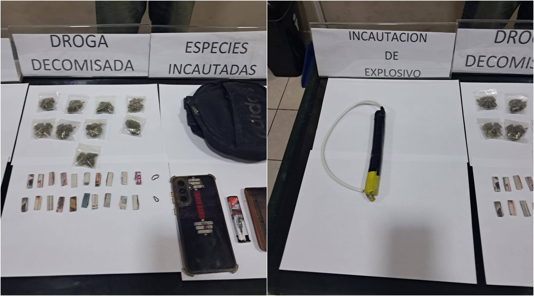 La detención se produjo cuando el sujeto portaba un cartucho de dinamita activo con mecha lenta, además de municiones y drogas, evitando así lo que habría sido una tragedia inminente.