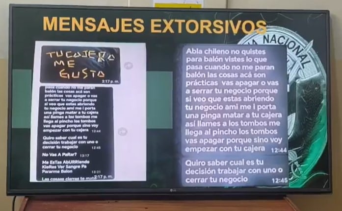 Según la investigación, “Duki” habría participado en hechos de extorsión y amedrentamiento contra un empresario de pollerías, identificado como propietario de la pollería “El Chilenito”. El presunto delincuente enviaba notas manuscritas con amenazas de muerte y habría colocado una carga explosiva en el negocio, registrada por cámaras de seguridad. El objetivo era obligar al empresario a pagar fuertes sumas de dinero bajo amenaza de muerte.