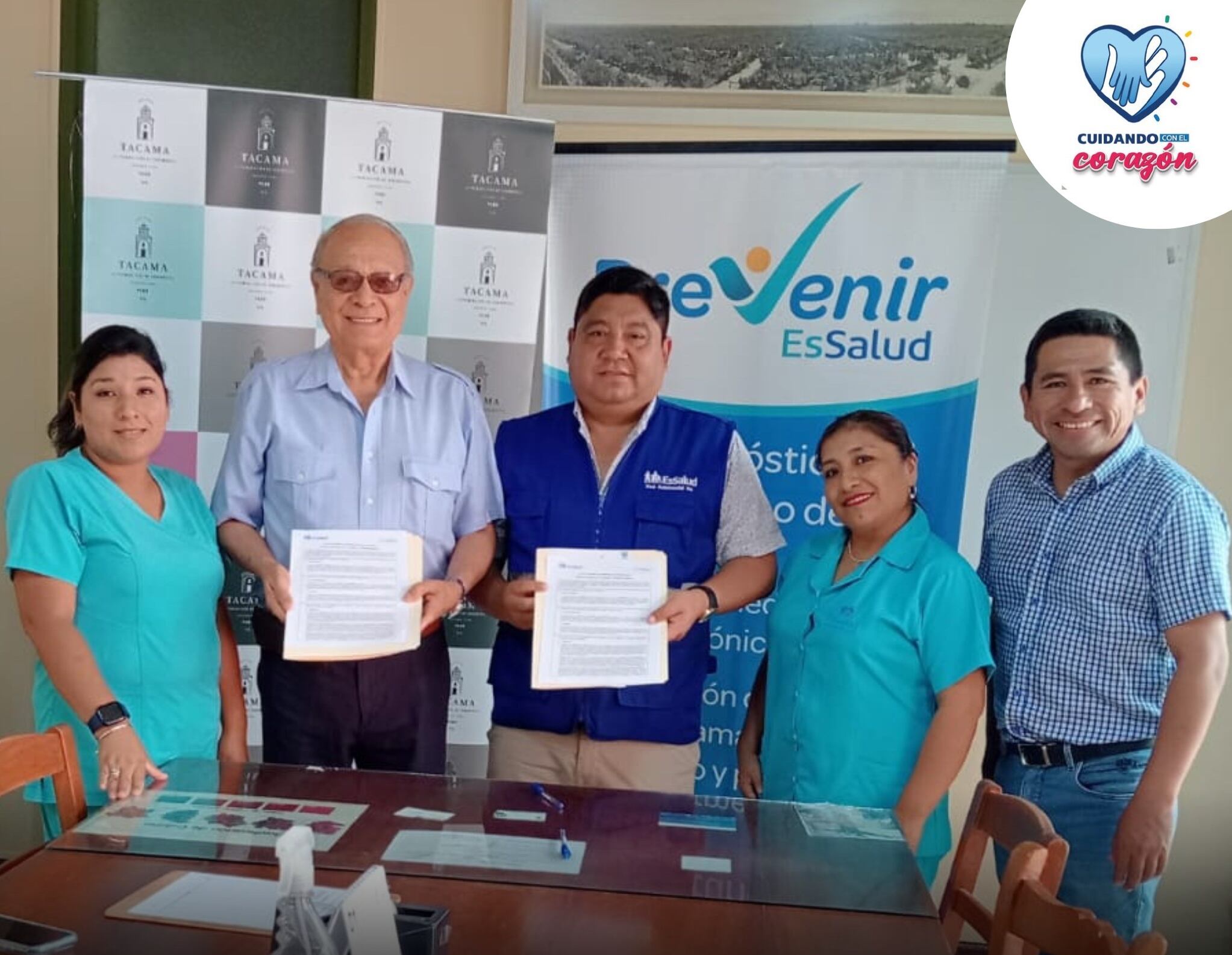 Esta alianza fue firmada por el Sr. Fernando Calderón Morón, representante de la empresa Tacama y el Dr. Jesús Gallegos, director del CAP II La Tinguiña; este convenio permitirá brindar atención a más de 500 trabajadores de la empresa privada.