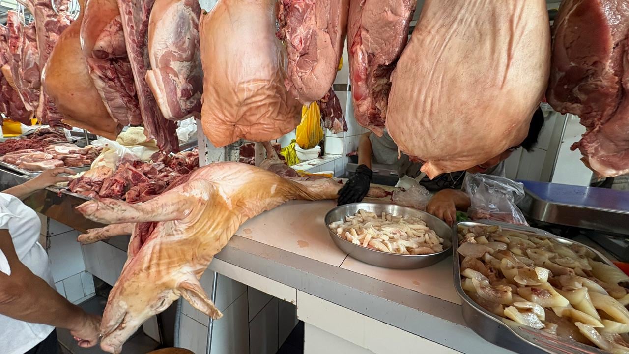 El lechón también registra una fuerte preferencia entre los compradores. Su precio se sitúa alrededor de los 23 soles por kilo, y un ejemplar de hasta 12 kilos puede llegar a costar 276 soles, mientras que los de mayor tamaño superan los 300 soles. Algunos comerciantes no descartan que, conforme se acerque la Navidad, el precio de un lechón entero alcance hasta los 350 soles.