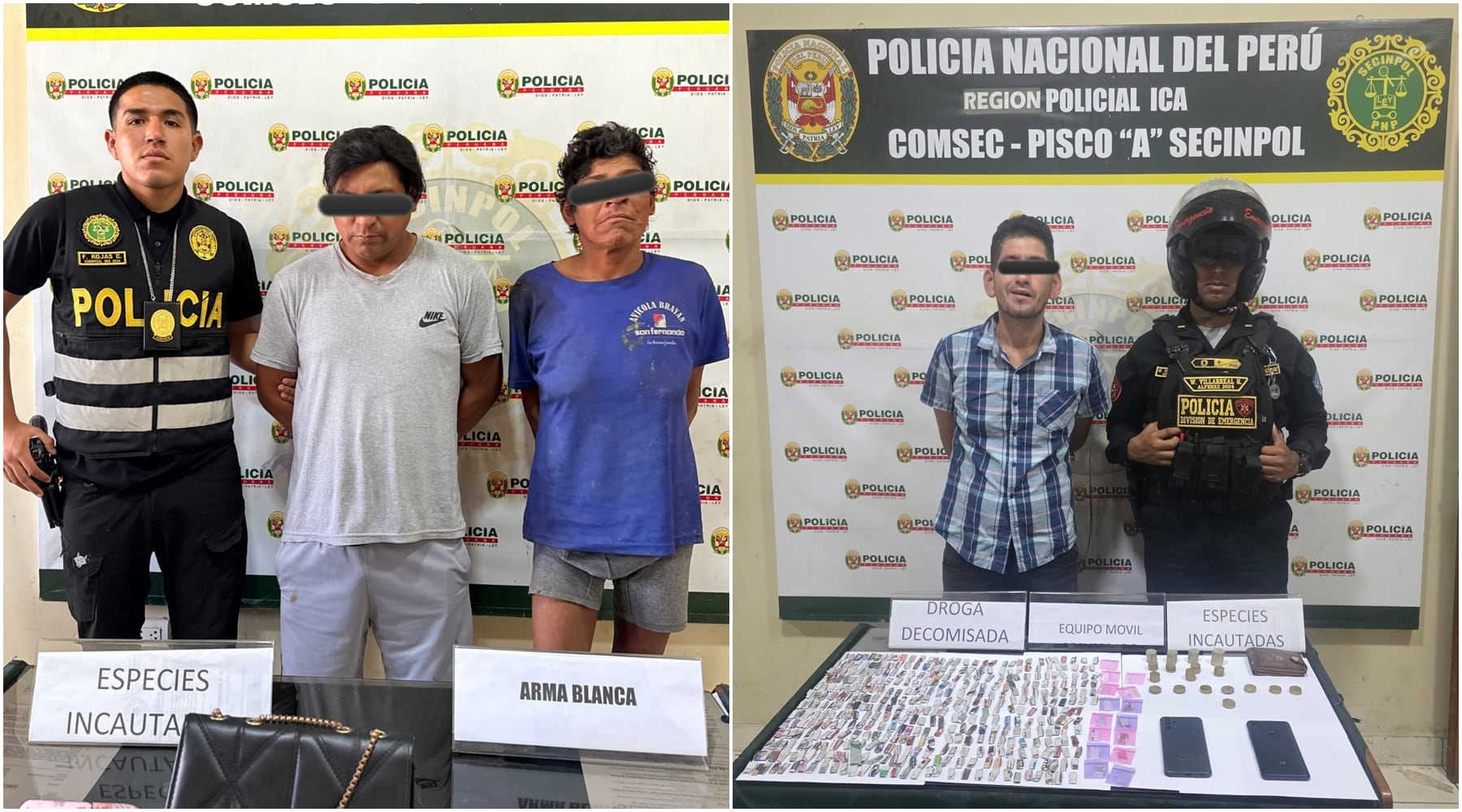 Efectivos de la Policía Nacional del Perú lograron la captura de dos presuntos integrantes de la banda delictiva denominada “Los Crazys de Pisco”, durante un operativo realizado tras un trabajo de seguimiento e inteligencia policial en esa ciudad.