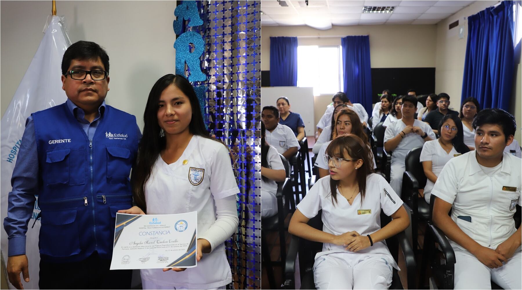 En la ceremonia se hizo entrega de una constancia de reconocimiento y felicitación a cada uno de los internos, por su compromiso, trabajo y dedicación al haber culminado satisfactoriamente su periodo de internado hospitalario.