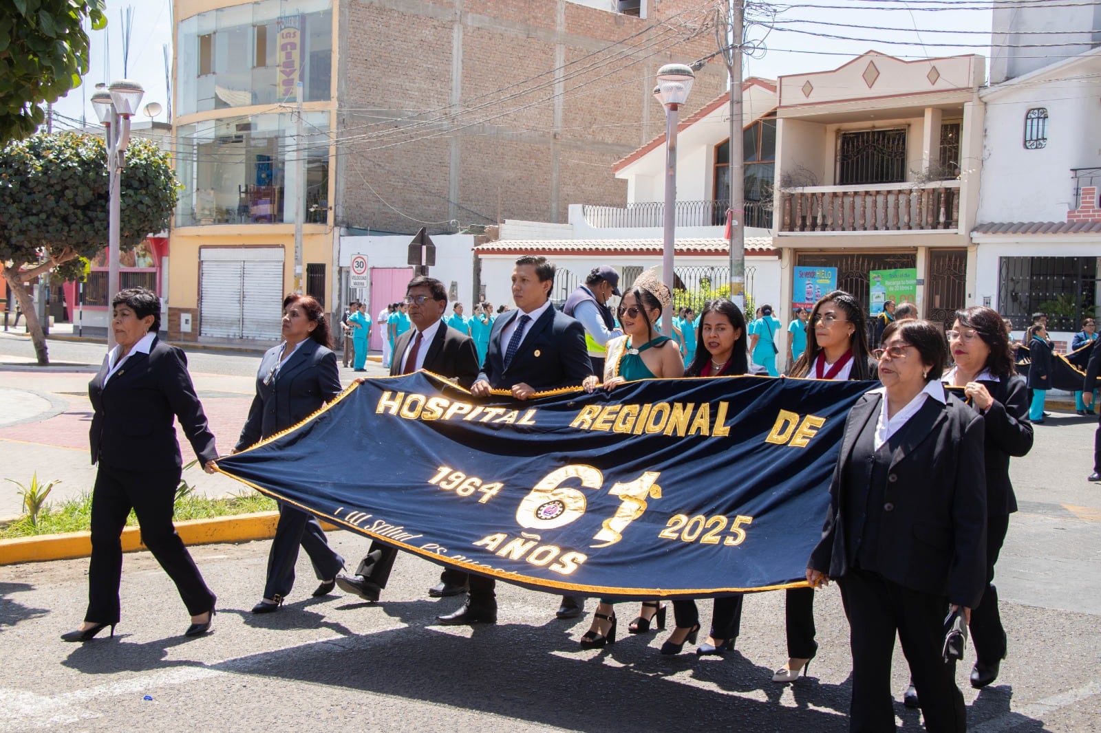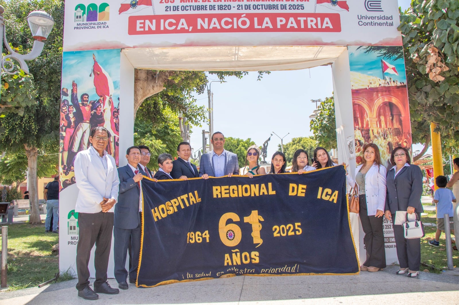 En el marco de las celebraciones por su 61.º aniversario institucional, el Hospital Regional de Ica participó en el tradicional Domingo Cívico, realizado en la Plazuela Bolognesi. Bajo la dirección ejecutiva del doctor Carlos Navea, diferentes áreas del hospital desfilaron mostrando unidad y vocación de servicio.