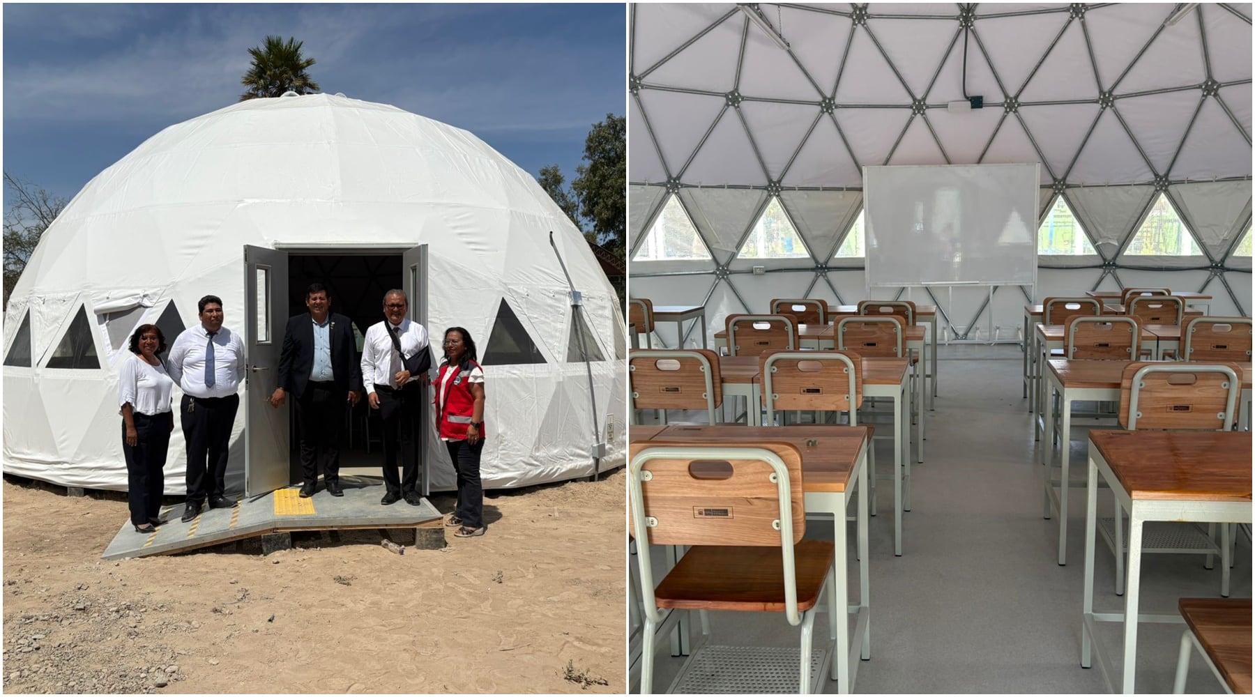 Estas estructuras prefabricadas ofrecen espacios cómodos y seguros, equipados con mobiliario nuevo escritorios, sillas para docentes y pizarras acrílicas y están diseñadas para resistir condiciones climáticas extremas, como sismos y lluvias.