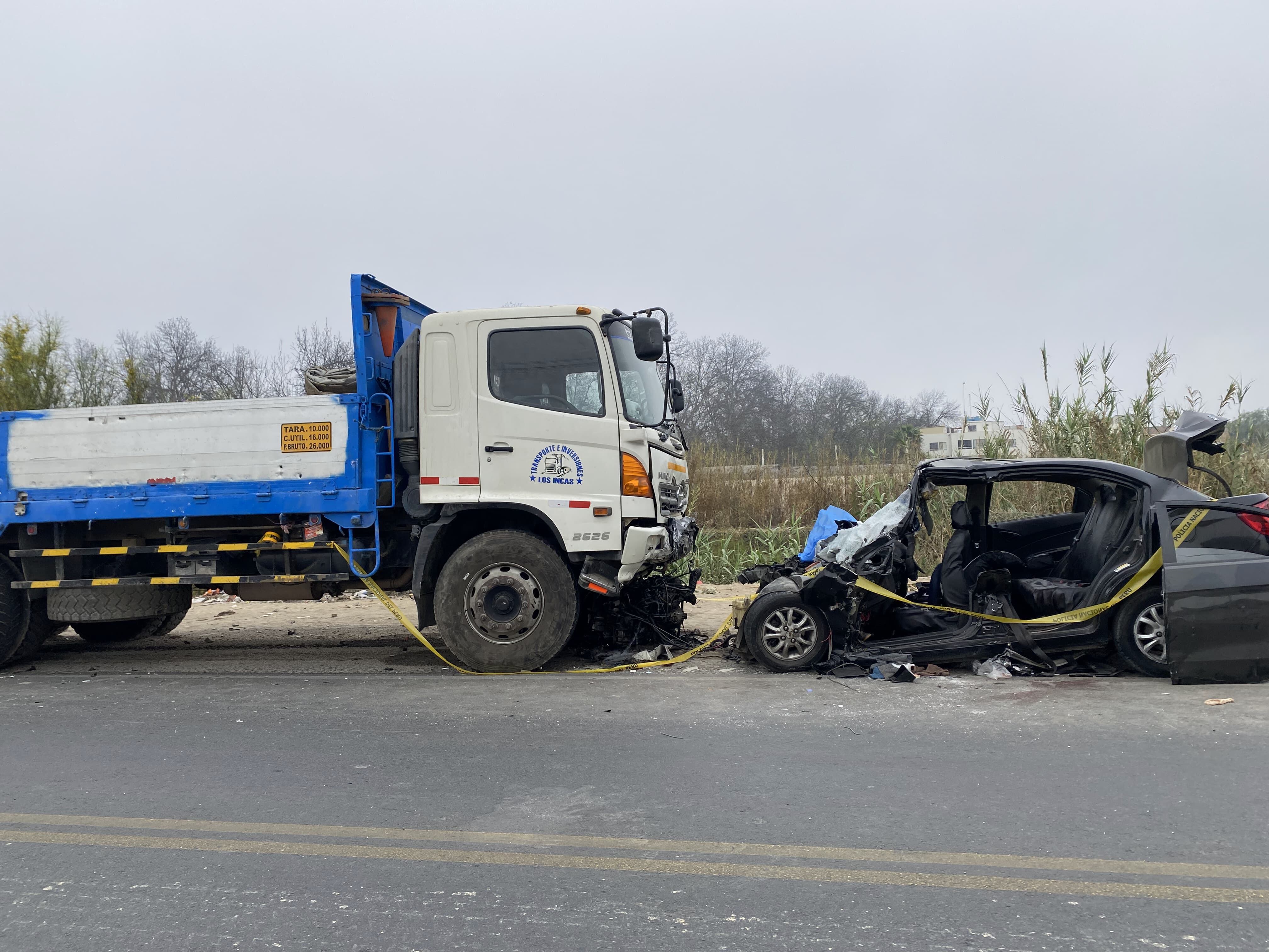 Por el brutal siniestro, perdió la vida el conductor del auto y tres pasajeros, además un cuarto tripulante de 19 años quedó herido de gravedad y fue llevado de emergencia al hospital. El conductor del camión, huyó del lugar del accidente tras la colisión, dejando atrás una escena de horror.