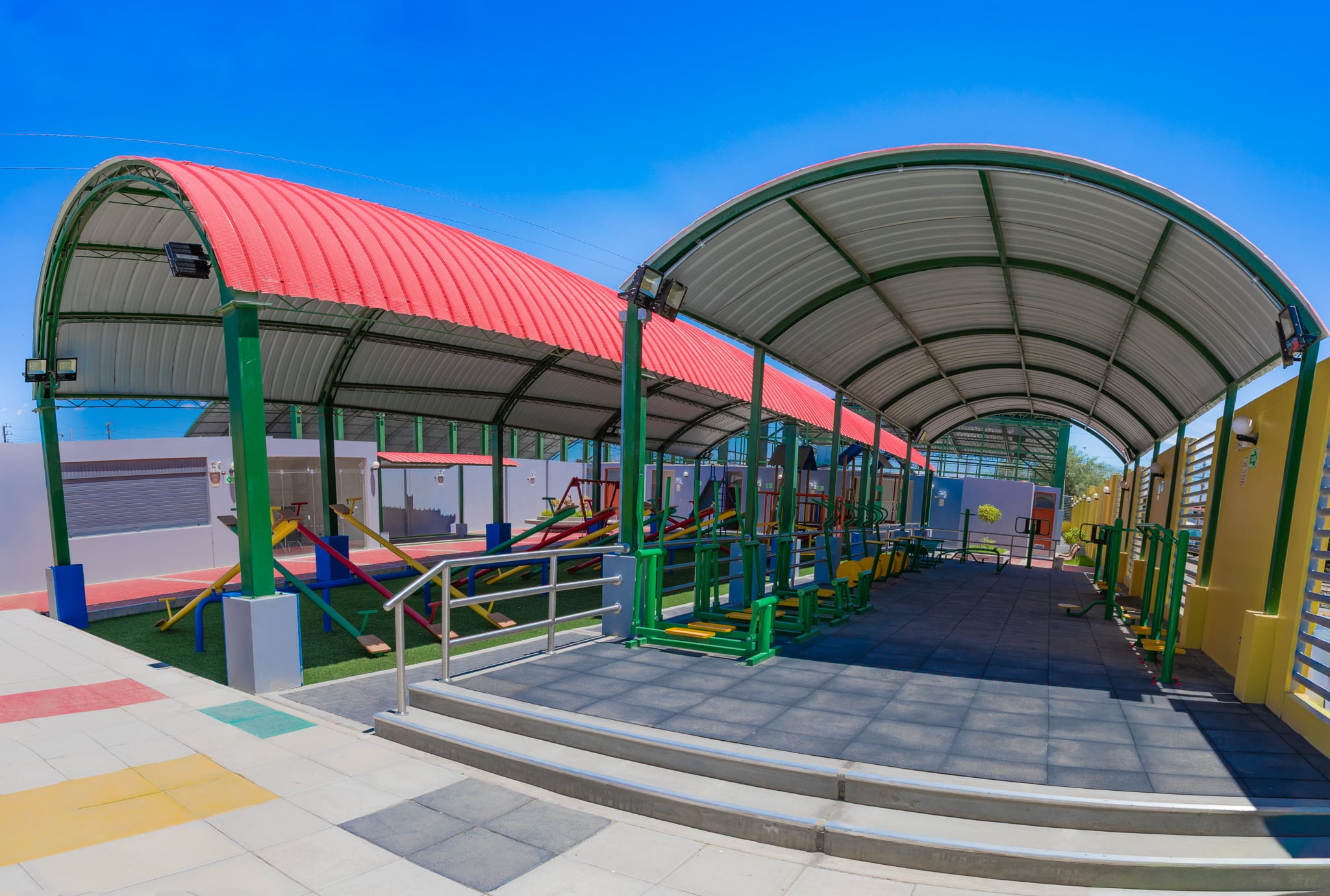 El polideportivo también dispone de un gimnasio equipado para entrenamiento de fuerza y preparación física, así como áreas abiertas para rutinas funcionales, danzas, talleres culturales y actividades comunitarias que promuevan estilos de vida saludables. Asimismo, se habilitó un espacio recreativo infantil con juegos seguros bajo cobertura, garantizando un entorno adecuado para el desarrollo y esparcimiento de los más pequeños.