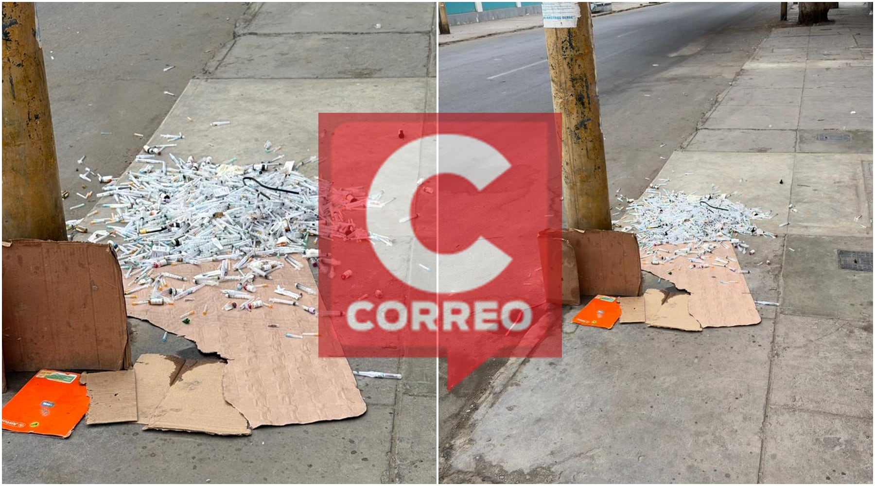 El hallazgo ha generado alarma entre los moradores, quienes advierten que estos residuos biomédicos podrían estar contaminados y representar un grave riesgo para la salud. La presencia de este material convierte la zona en un posible foco de infección, especialmente para niños y transeúntes que circulan por el sector.