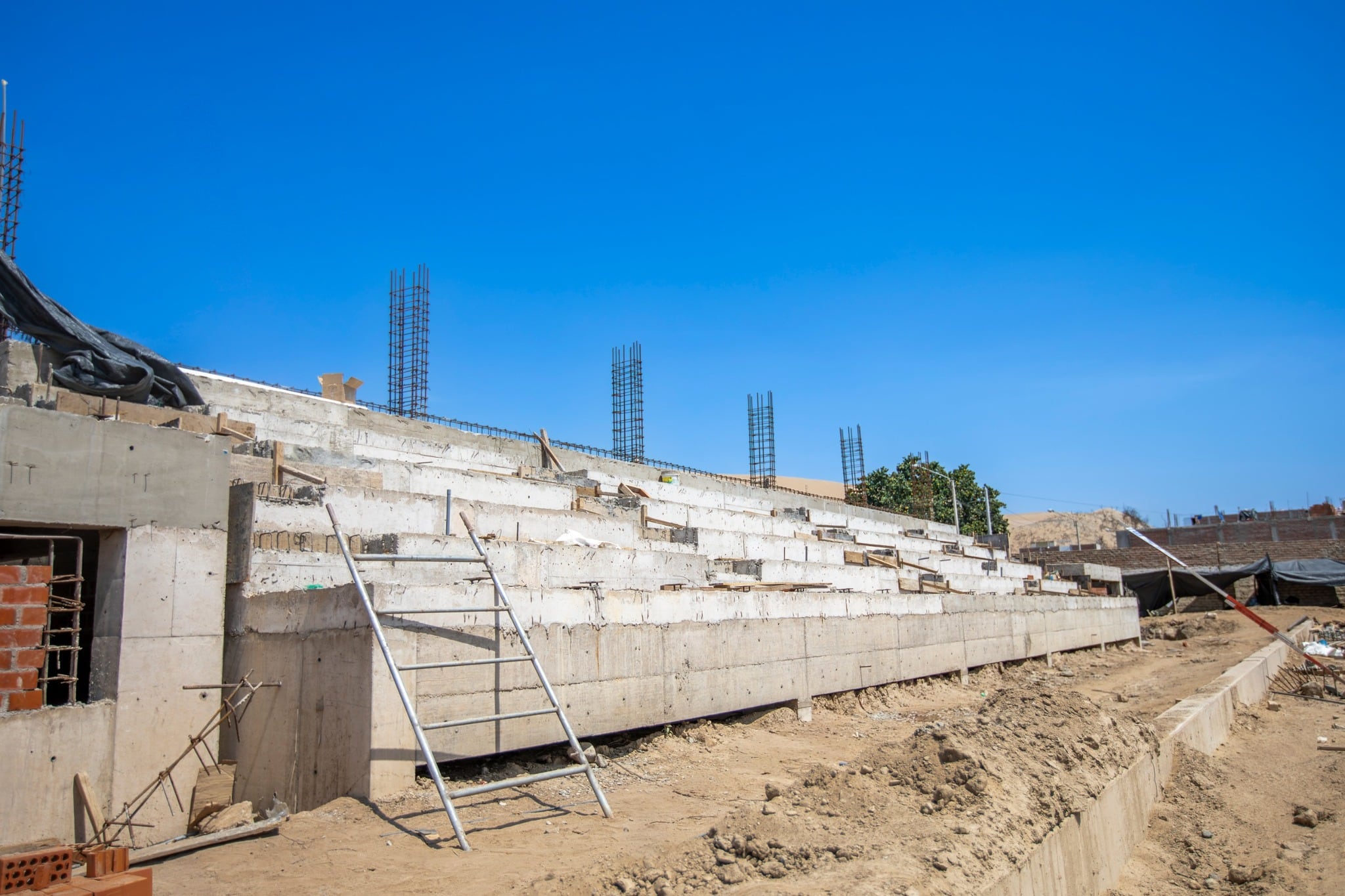 La construcción del Complejo Deportivo de Santa María, uno de los proyectos de infraestructura deportiva más ambiciosos que se ejecutan en la región Ica, continúa avanzando conforme al cronograma establecido, con progresos visibles en varias de sus estructuras principales.