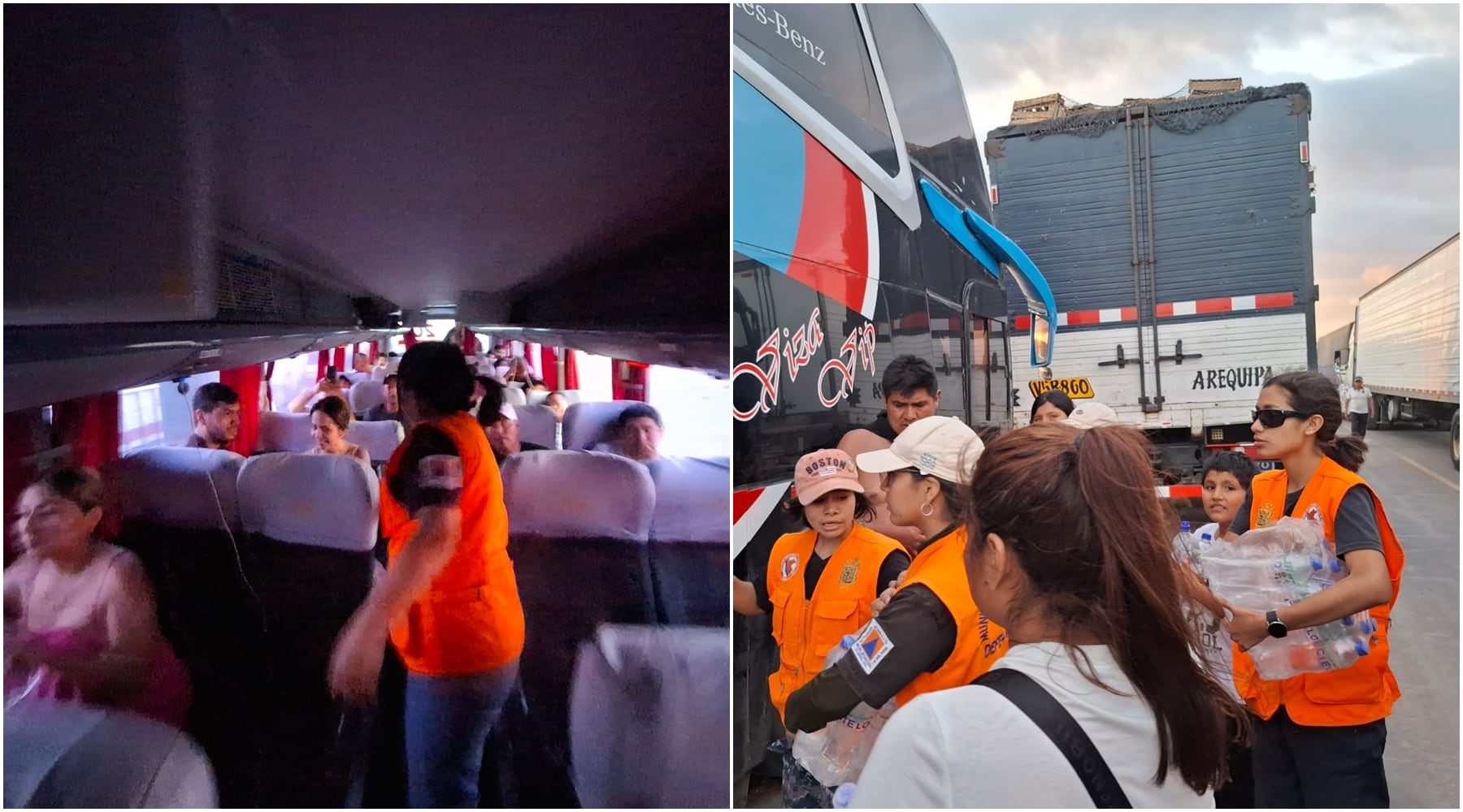 La emergencia dejó a cientos de personas varadas, incluyendo niños y adultos mayores, dentro de buses interprovinciales, autos particulares, camiones y tráileres. Ante esta situación, las autoridades municipales entregaron ayuda humanitaria, distribuyendo botellas de agua mineral y proporcionando atención básica a los afectados mientras se restablecía la transitabilidad de la carretera.