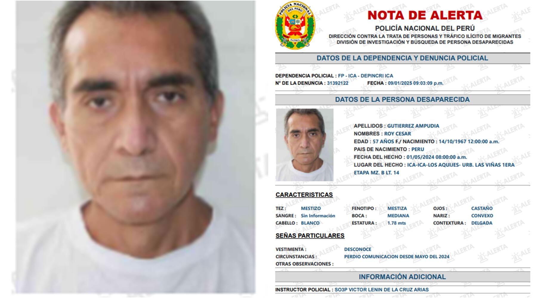 Gutiérrez Ampudia es residente de la urbanización Las Viñas, en el distrito de Los Aquijes, en la provincia de Ica. Su desaparición fue reportada el 1 de mayo de 2024 a las 8:00 de la mañana.