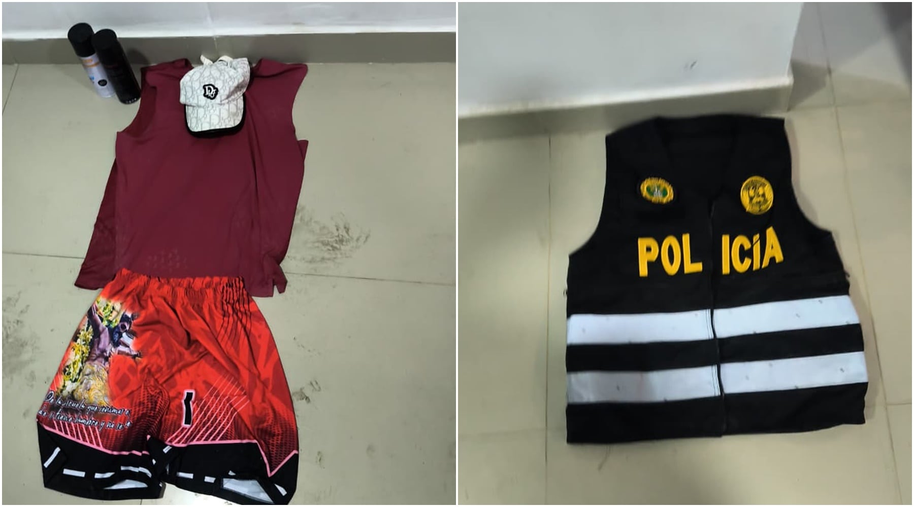 Entre los objetos incautados también figura un chaleco policial de color negro con cinta reflectiva 3M, que portaba el escudo de la Depincri, lo que sugiere que los investigados podrían haber intentado simular autoridad para facilitar sus acciones delictivas.