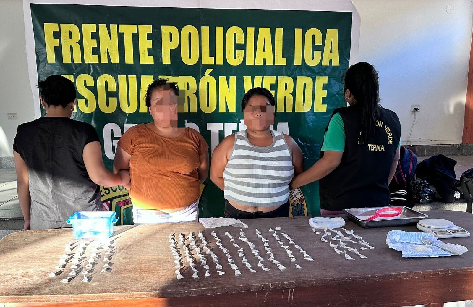 Efectivos del Escuadrón Verde del Frente Policial Ica, el día 31 de mayo de 2024 a las 03:45 de la tarde aproximadamente ejecutaron un golpe al tráfico ilícito de drogas y detuvieron a dos mujeres.