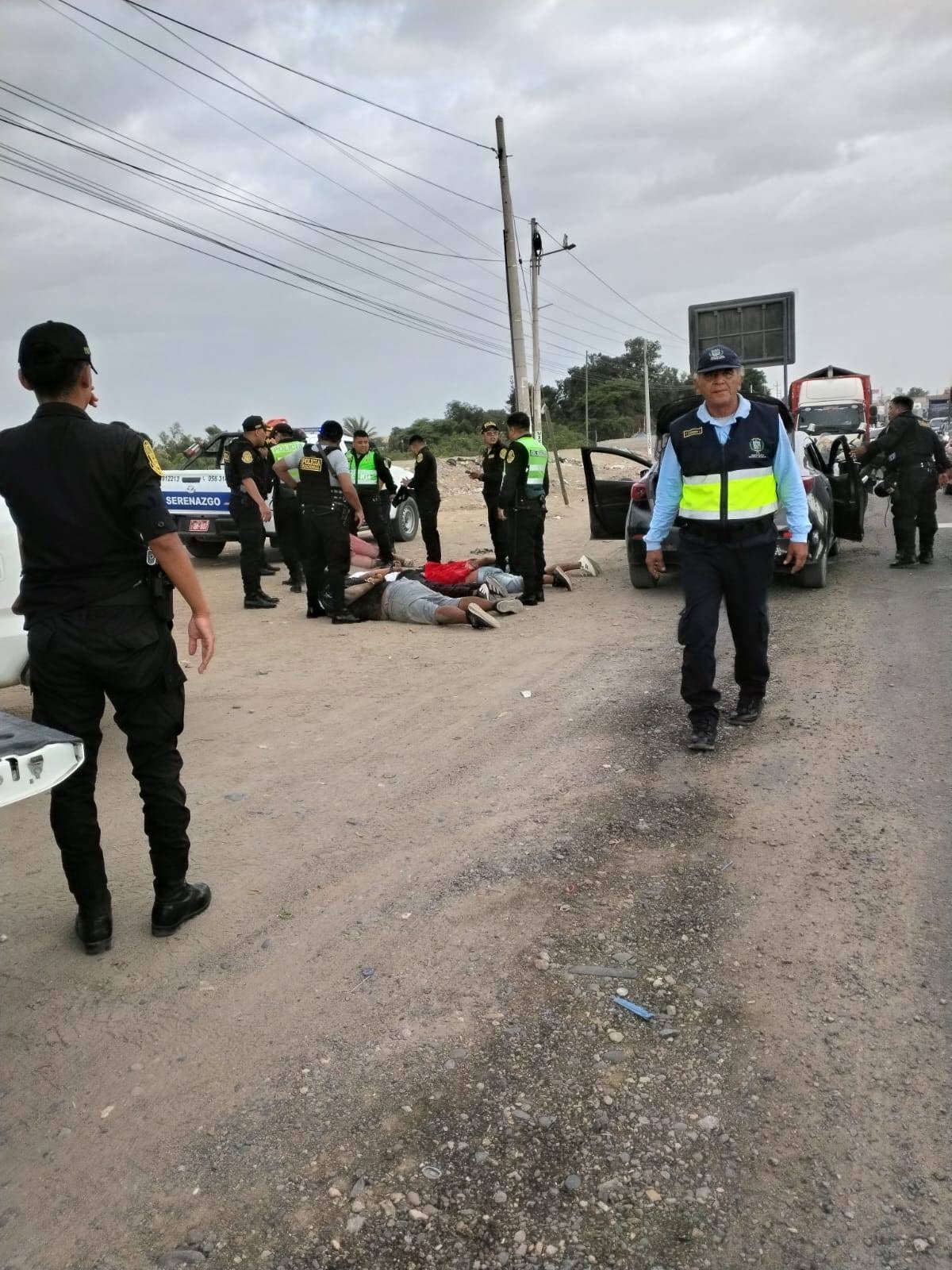 Tras el robo, los sospechosos emprendieron la huida hacia el sur, momento en el que fueron detectados por efectivos de la Policía Nacional del Perú (PNP) del sector Villacurí. De manera inmediata, se coordinó con la comisaría de Salas y el equipo de Serenazgo de la Municipalidad de Guadalupe, implementando un plan cerco que permitió interceptarlos antes de que alcanzaran el sector Expansión.