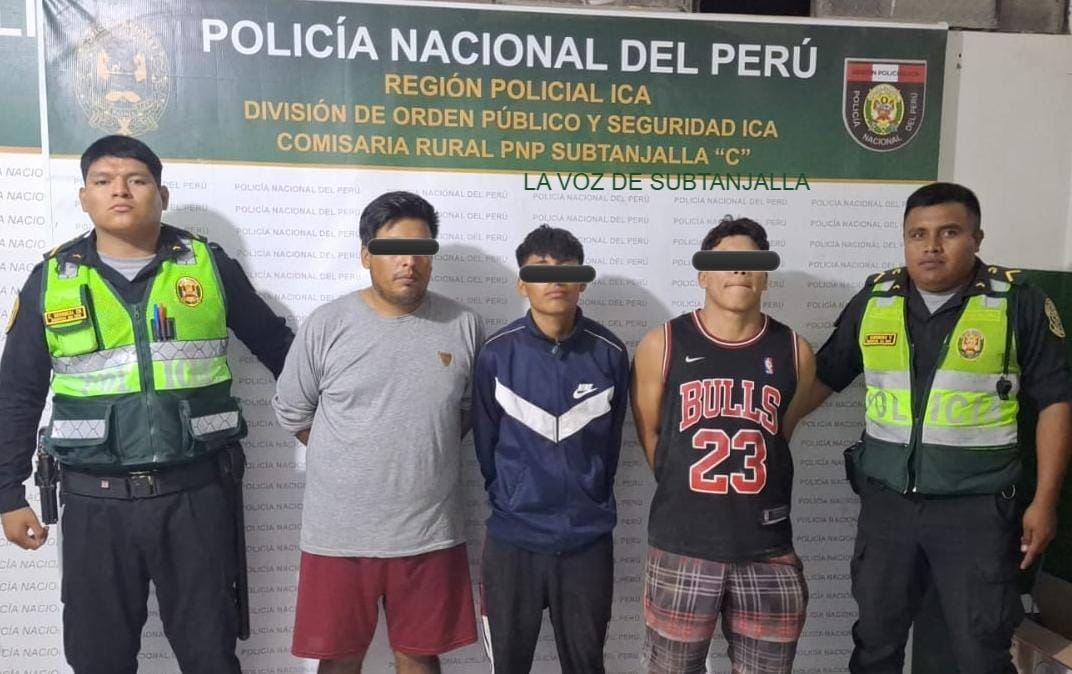 Un operativo policial realizado en el distrito de Subtanjalla, en la provincia de Ica, culminó con la detención en flagrancia de tres jóvenes sindicados como integrantes de una presunta banda criminal conocida como “Techeros de Subtanjalla”.