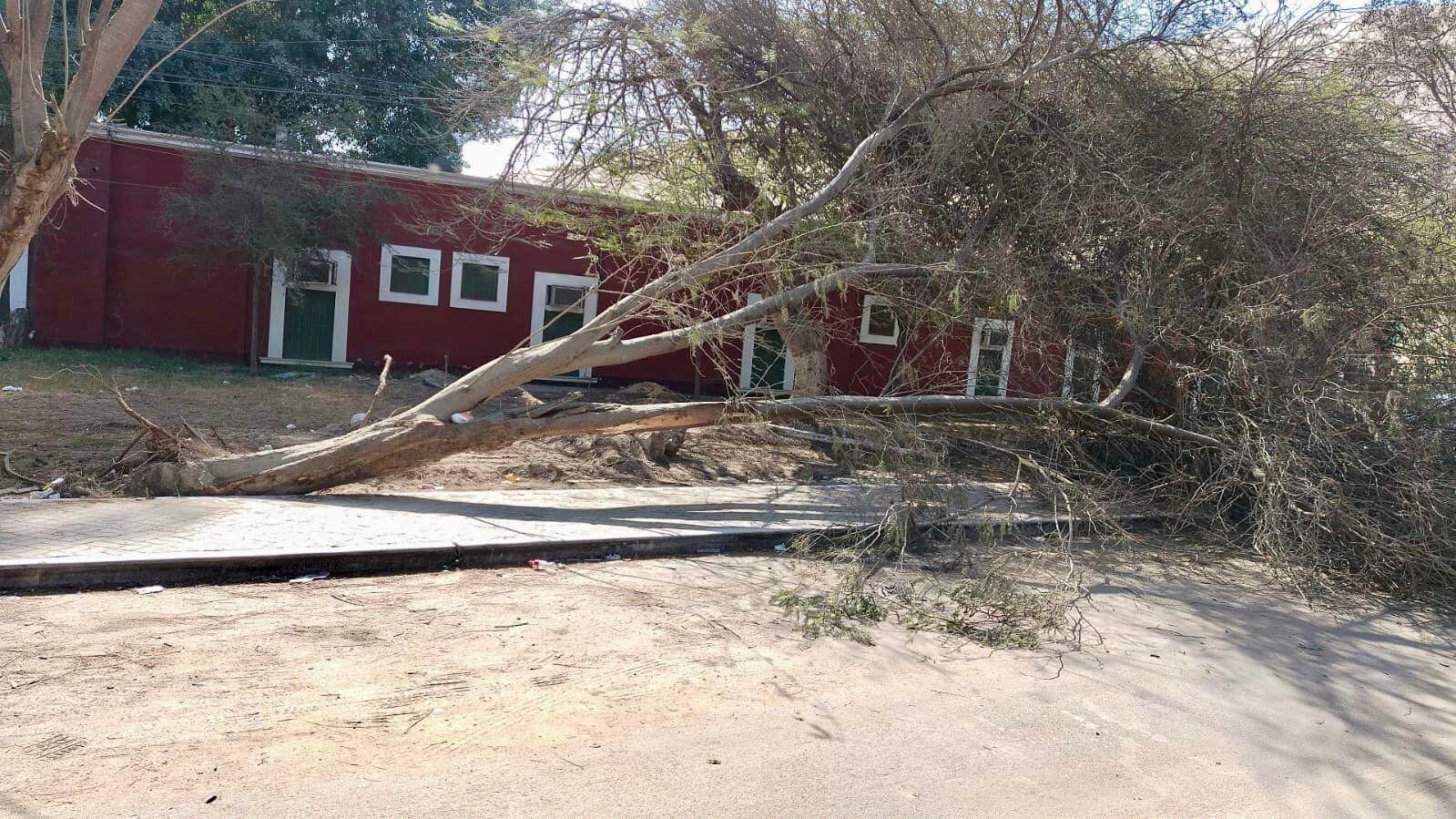 En menos de tres días, un segundo árbol ha caído en el balneario de Huacachina. Al igual que el primer incidente, el árbol frondoso no soportó la humedad y sus raíces expuestas, una consecuencia que estaría relacionada a las recientes obras de construcción de veredas en la zona.