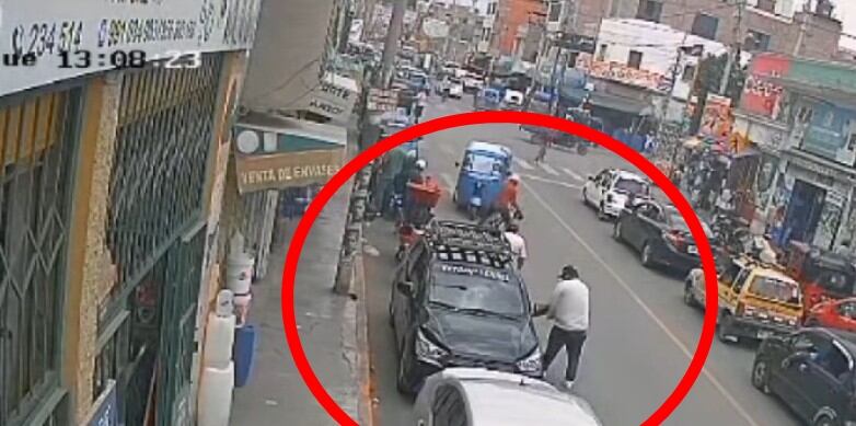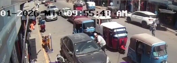 En otro video captado también en enero, el mismo sujeto de contextura gruesa fue grabado cometiendo un robo bajo la misma modalidad en otro punto de la ciudad, huyendo con el botín a bordo de una mototaxi celeste.