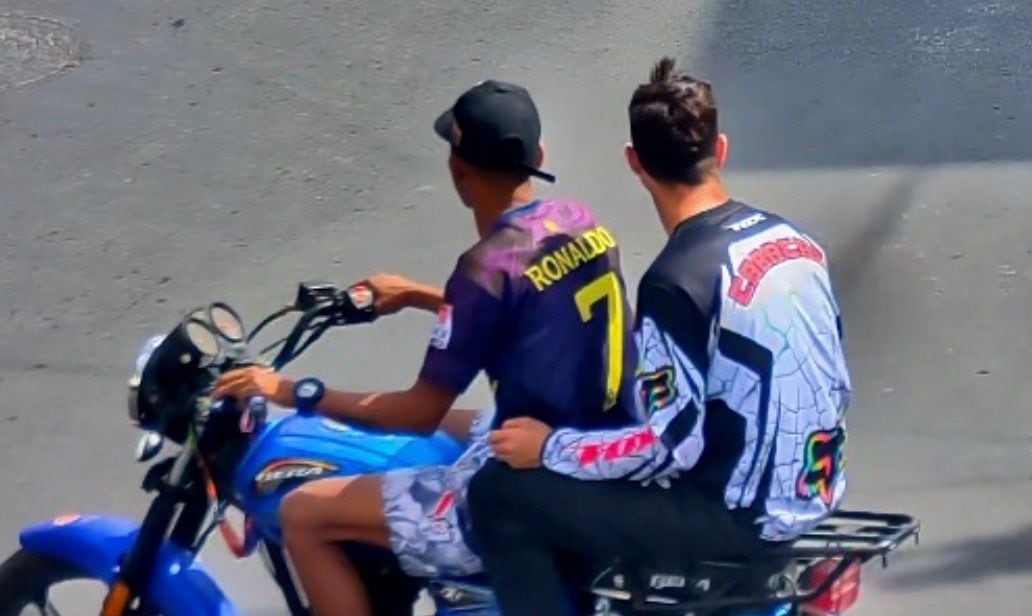 Paralelamente, se efectuó un análisis minucioso de los ocupantes. El conductor presentaba una vestimenta constante: camiseta deportiva con el número 7, gorra negra y zapatillas oscuras, además de mantener una postura corporal similar en las distintas tomas. Por su parte, el pasajero utilizaba sandalias blancas y una camiseta blanca con negro con un diseño tipo “Fox”, con un logotipo de gran tamaño en la parte posterior, además de coincidir en contextura física en todas las imágenes analizadas.