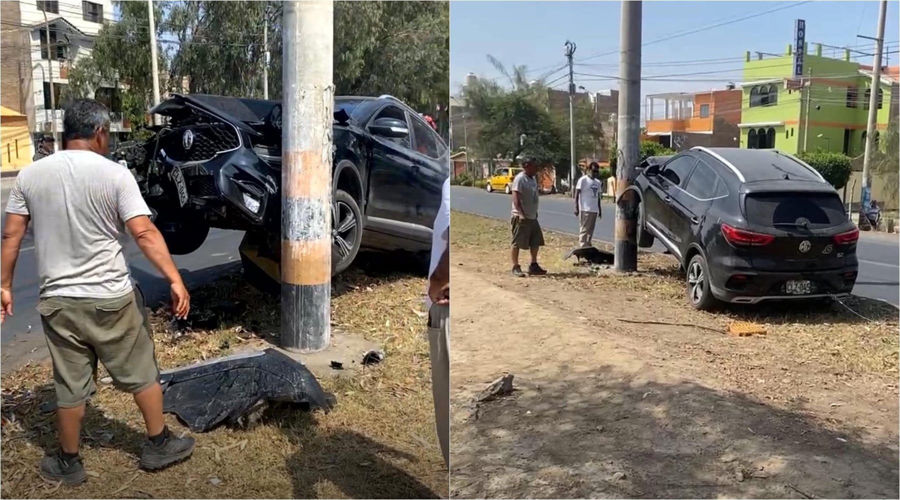 La unidad vehicular habría sufrido un precipitado despiste colisionando fuertemente contra la barrera protectora de concreto de un poste y también contra el poste de energía eléctrica de más de 10 metros de altura. La parte delantera de la camioneta quedó con severos destrozos, evidenciado la brutalidad del choque.
