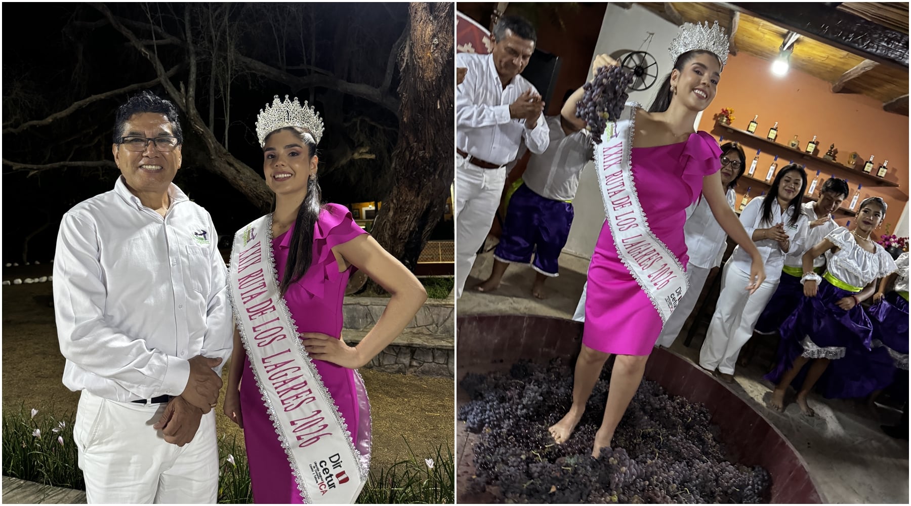 En el acto protocolar también fue coronada Ángela Daniela Ibarguren Falconí, de 24 años, como reina de la XXIX Ruta de los Lagares. La soberana realizó la tradicional pisa de la uva al ritmo del cajón e invitó a turistas y residentes a participar en las actividades programadas.