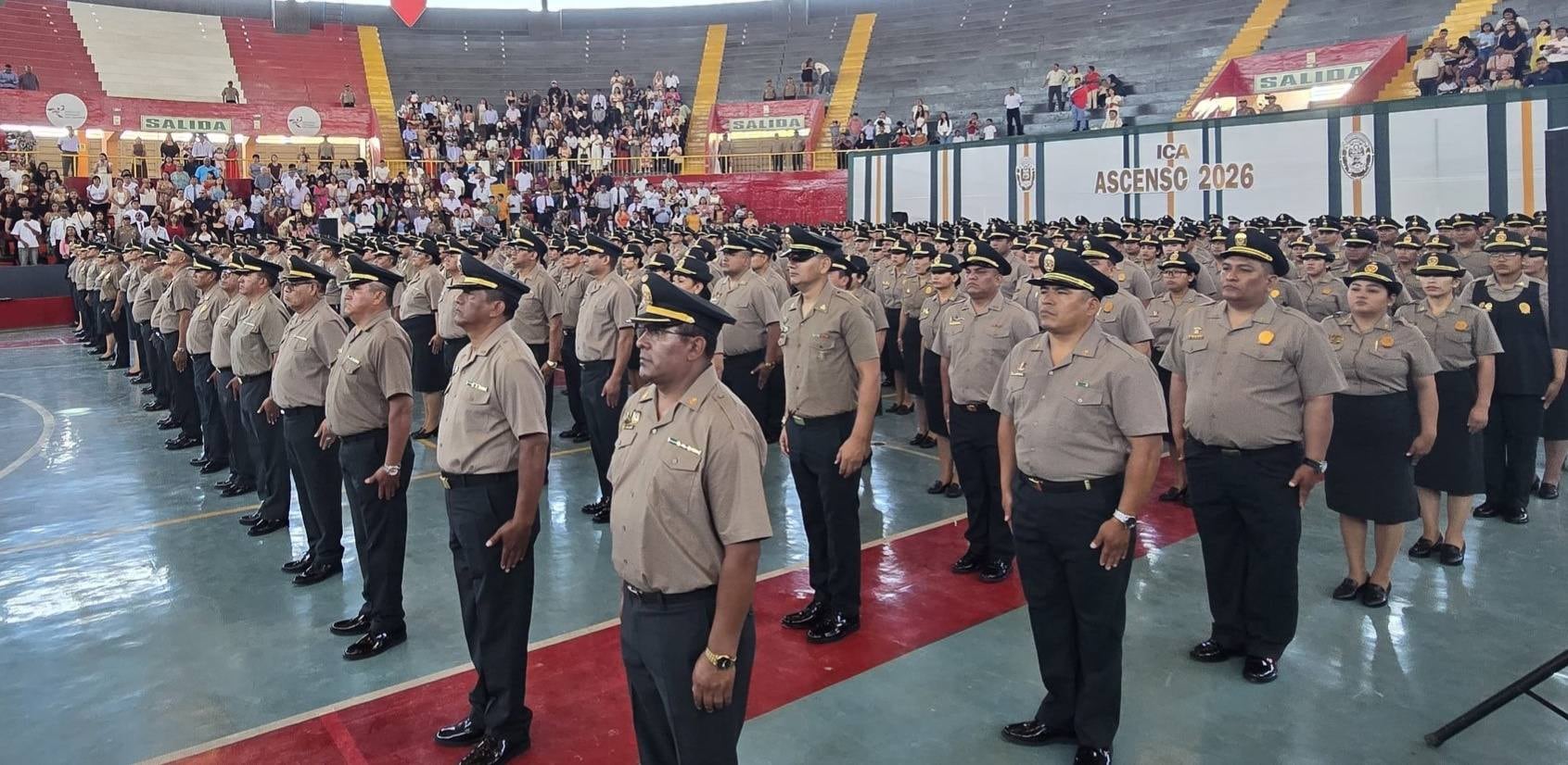 Alrededor de 500 efectivos de la Región Policial Ica recibieron sus insignias de mando tras ascender al grado inmediato superior, durante una ceremonia realizada la mañana de ayer en el Coliseo Cerrado de Ica.