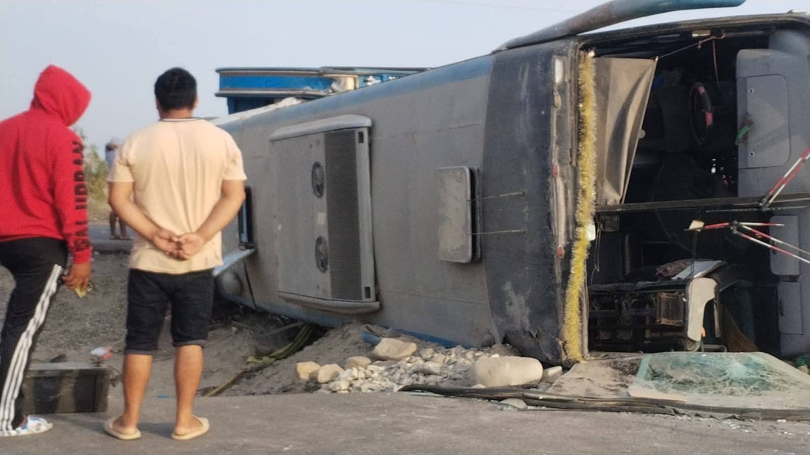 Tras salir de la carretera, el bus recorrió varios metros fuera de la pista antes de impactar con un camión que se dirigía hacia una zona turística. Como consecuencia del choque, el vehículo de carga terminó volcado en la berma central que divide ambos sentidos de la vía.