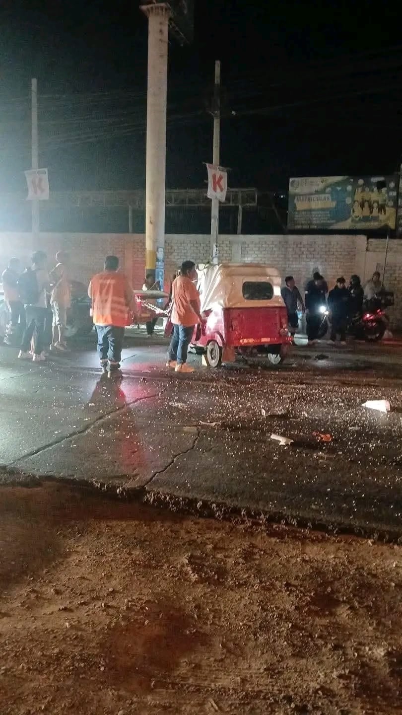 Un aparatoso accidente de tránsito se registró la noche del lunes en la intersección de la avenida Abraham Valdelomar con la Panamericana Sur, en el distrito de Salas Guadalupe, luego de que una mototaxi impactara violentamente contra un tráiler.