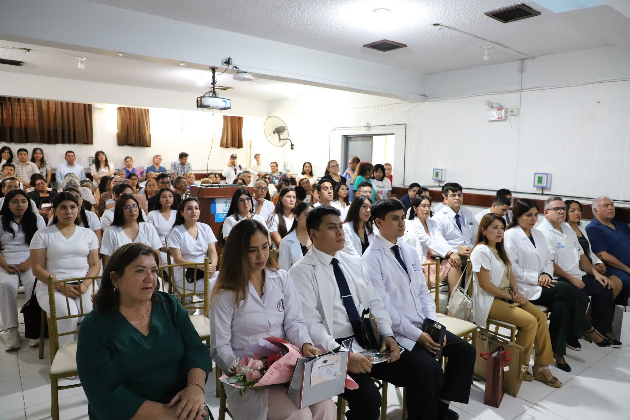 Por su parte, la interna Guerrero Jhon, en representación de su promoción, agradeció a docentes y coordinadores por su acompañamiento y apoyo durante el último año académico, destacando la importancia de la práctica clínica en su formación profesional.