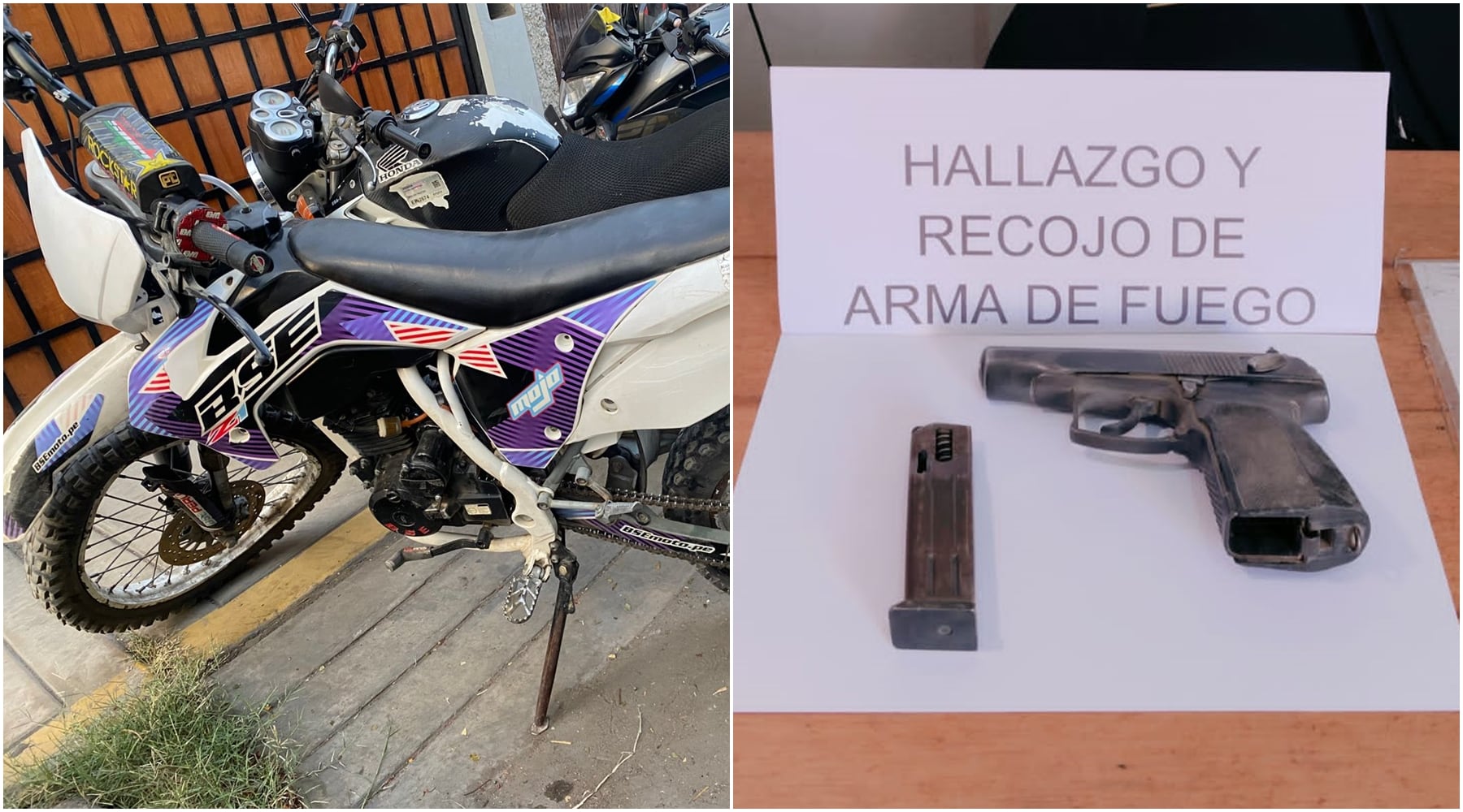 Durante la intervención, la Policía incautó un arma de fuego, una cacerina y una motocicleta tipo Cross de color blanco, presuntamente utilizada para ejecutar el ataque y facilitar la huida. Además, se confirmó el hallazgo de los nueve casquillos recogidos en el lugar.