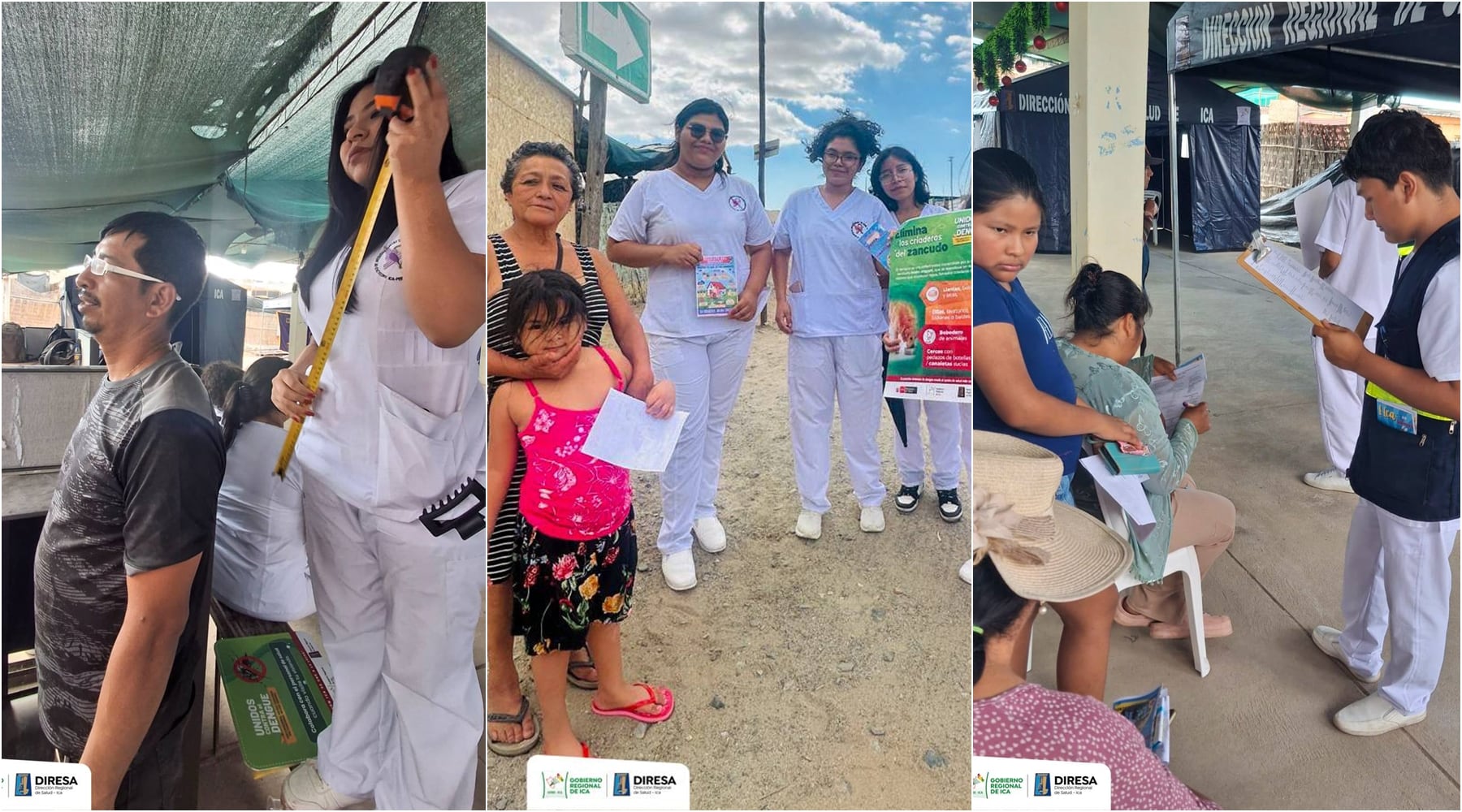 Tras las gestiones del director regional de salud; Dr. Héctor Quispe Carrascal, y la decana del Colegio Médico de Ica; Dra. Julia Neira Goyeneche, se logró brindar a más de medio centenar de personas los servicios de atención médica, medida de la presión arterial, talla y peso, sesiones educativas sobre prevención y control de dengue, entrega de víveres, entre otros.