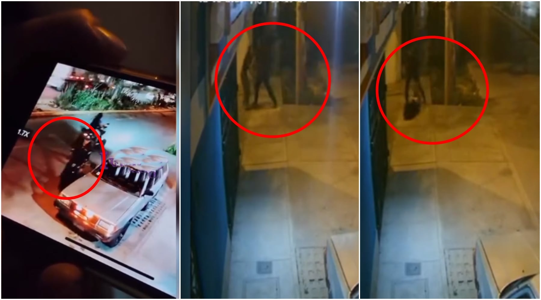 Las imágenes captadas por una cámara de videovigilancia muestran cómo una mototaxi se detiene repentinamente cerca de la joven. En cuestión de segundos, uno de los sujetos desciende del vehículo y se lanza violentamente contra ella. El delincuente la jala con fuerza, la arrastra por la vereda y finalmente la arroja hacia un jardín, mientras forcejea para arrebatarle su celular.