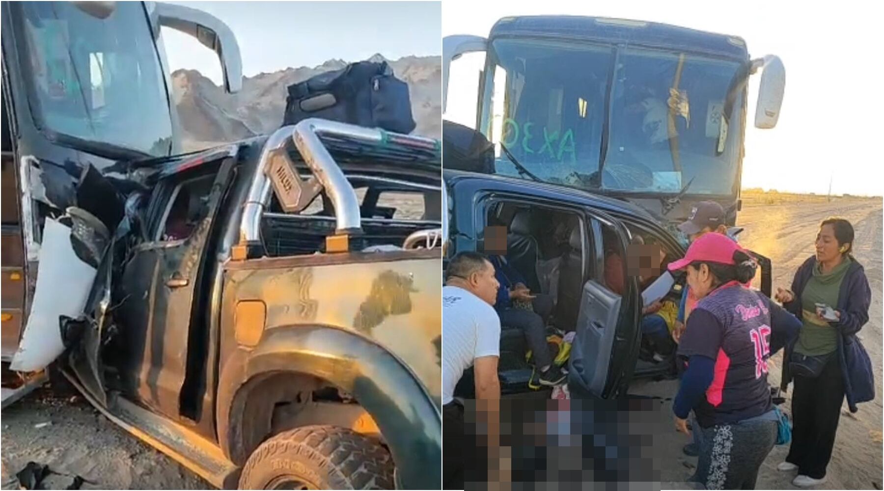 Tragedia en el kilómetro 09 de la carretera por el desierto del distrito de Yauca del Rosario, en la provincia de Ica, donde una camioneta impacto brutalmente contra un bus, causando la muerte de dos mujeres y hasta seis heridos de gravedad.