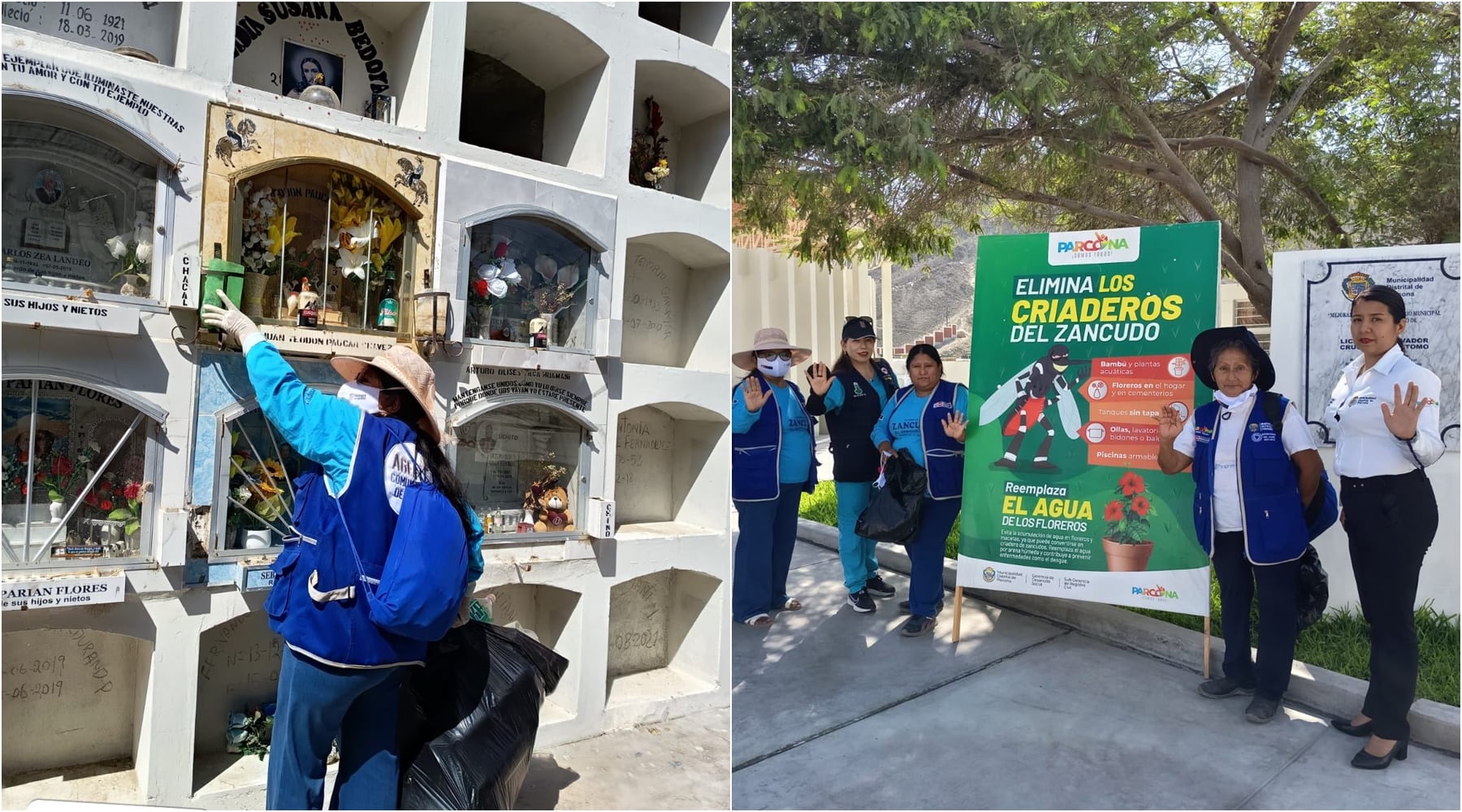 En un esfuerzo por prevenir la propagación del dengue, agentes comunitarios de salud, junto a personal de la Red de Salud Ica, realizaron un operativo de control en el cementerio del distrito de Parcona, donde identificaron y eliminaron criaderos del zancudo transmisor de la enfermedad.